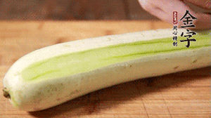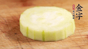 絲瓜去皮,切成1cm厚的小圈。