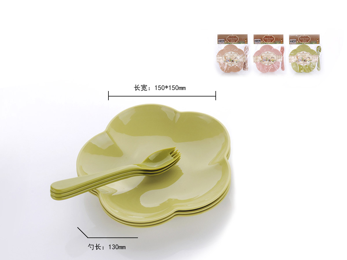 得力熊歐式小號簡約梅花餐盤(4pcs)( 配4pcs叉匙)