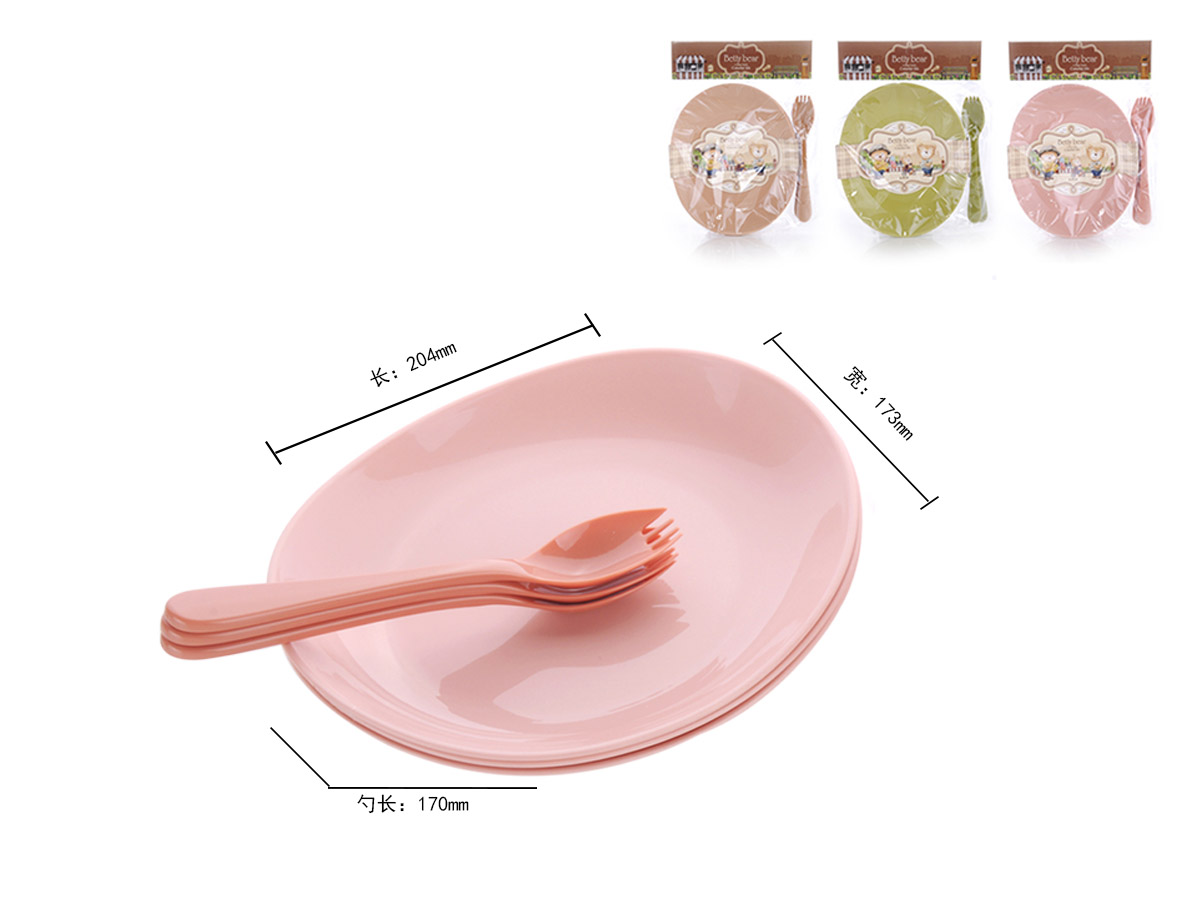 得力熊歐式大號簡約橢圓餐盤(4pcs)( 配4pcs叉匙)