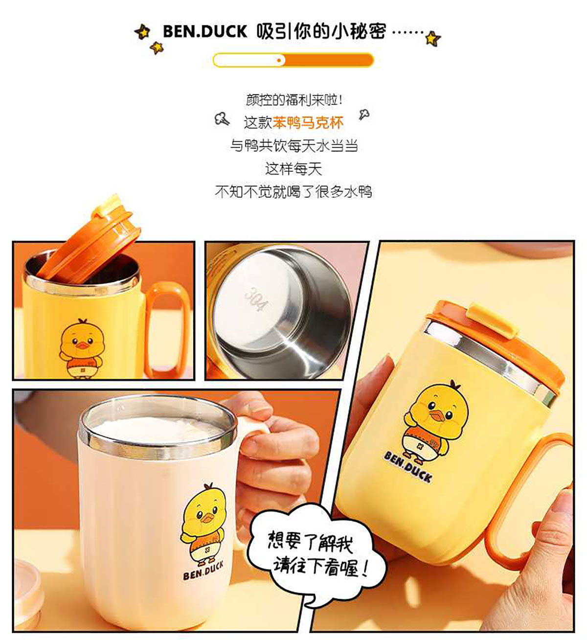 400ml笨鴨304不銹鋼翻扣保溫杯(帶手柄)