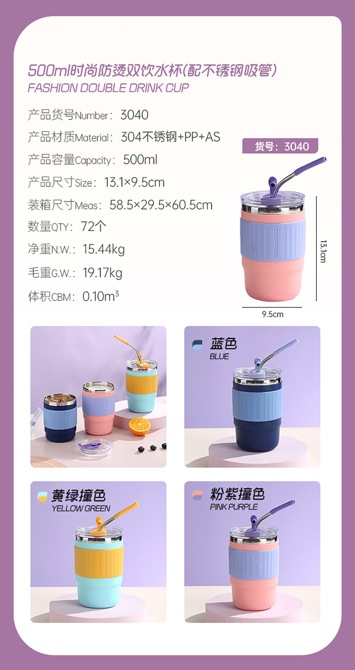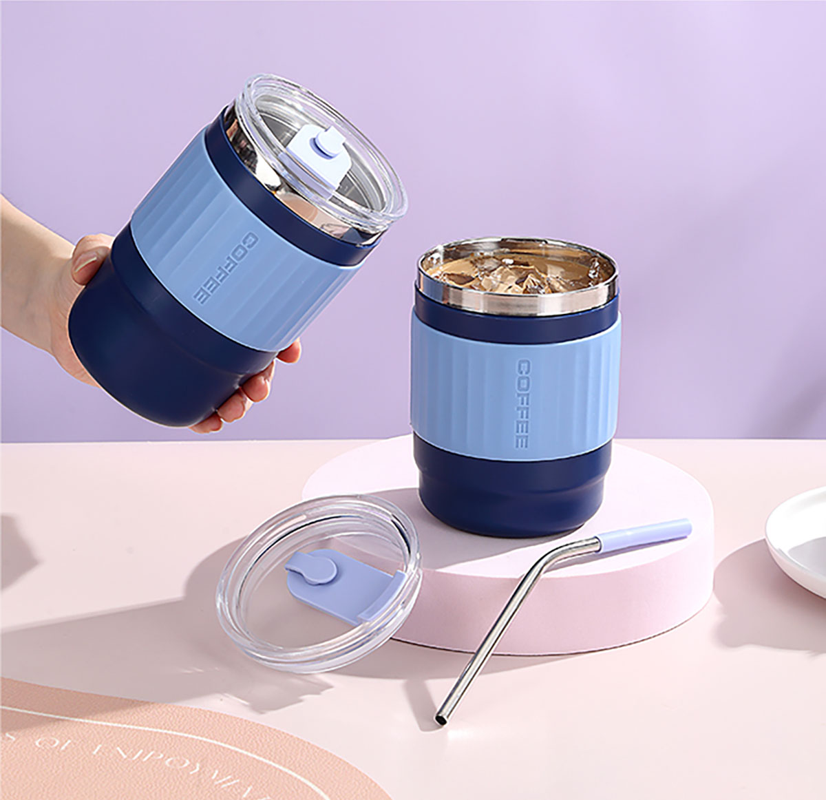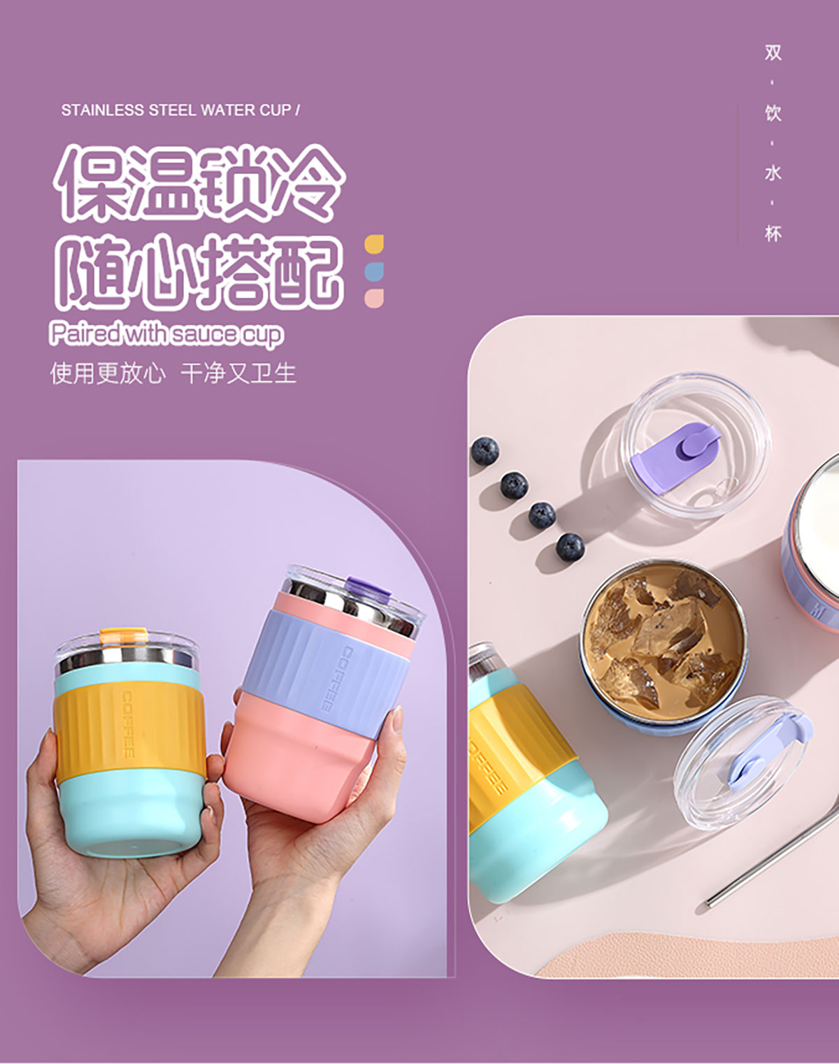 400ml/500ml時(shí)尚防燙雙飲水杯(配不銹鋼吸管)