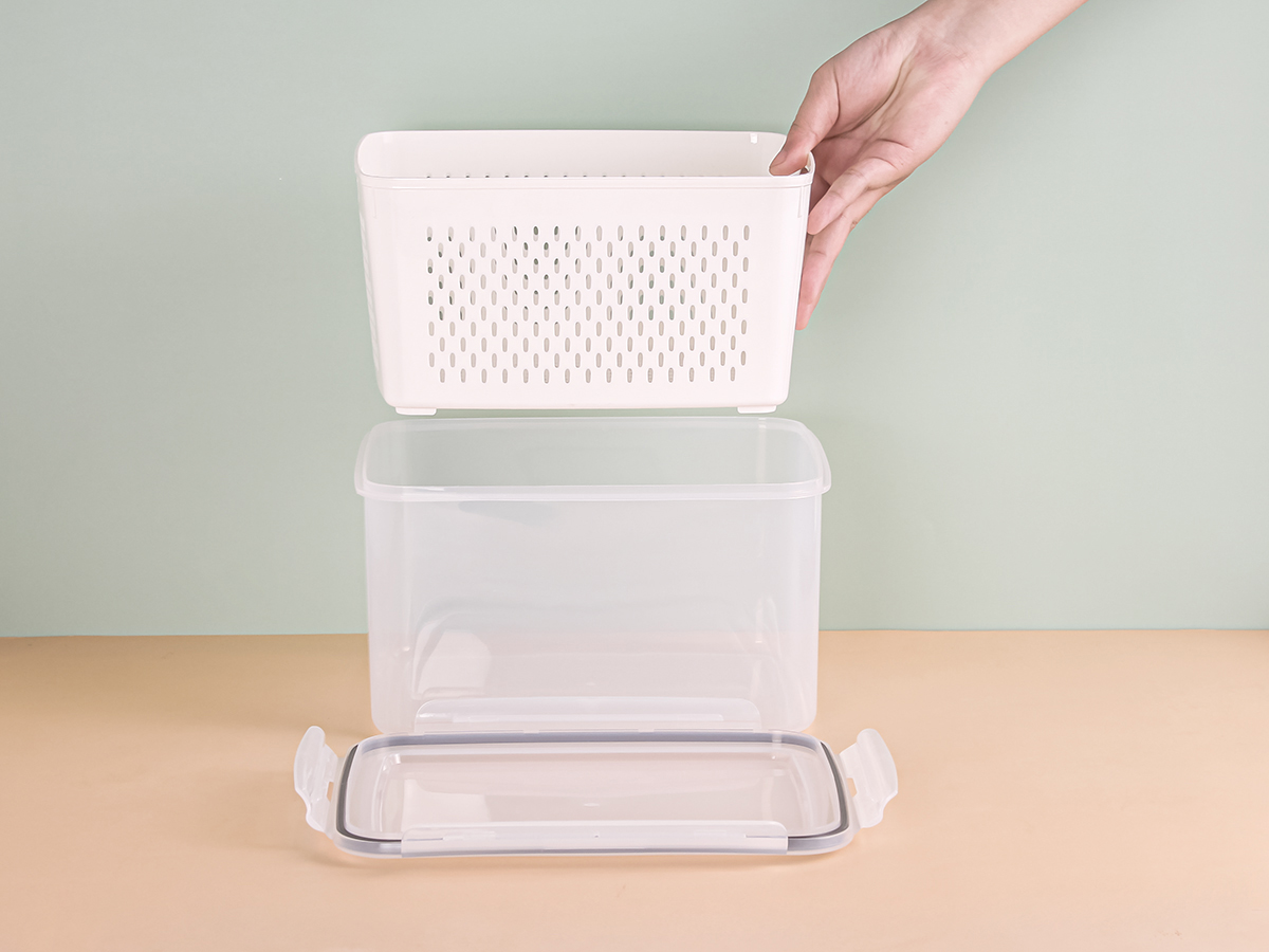 美時圓形/正方形/長方形密封瀝水保鮮盒(5200ml)