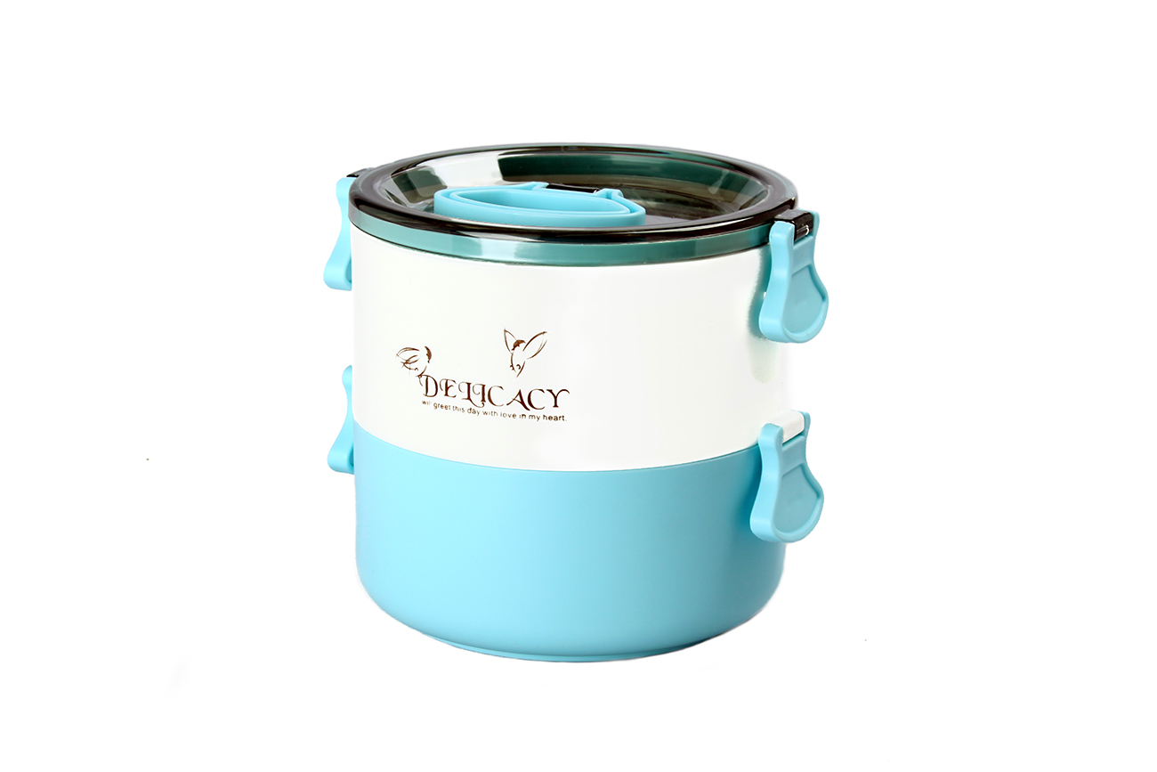 可伊圓形不銹鋼雙層便當(dāng)盒(中精裝)