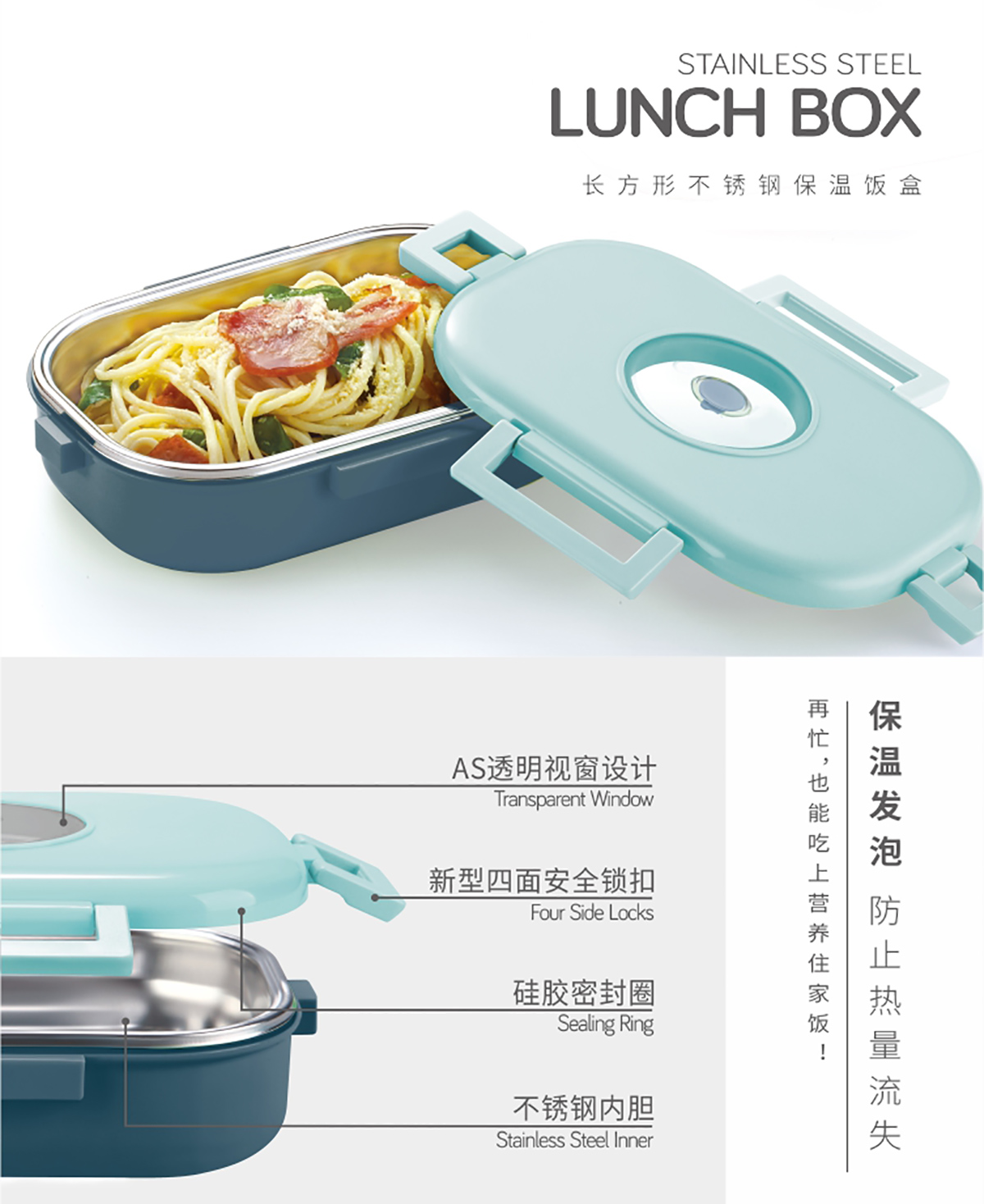 (特得美))長方形/長方形大號不銹鋼保溫飯盒(加大版6951)