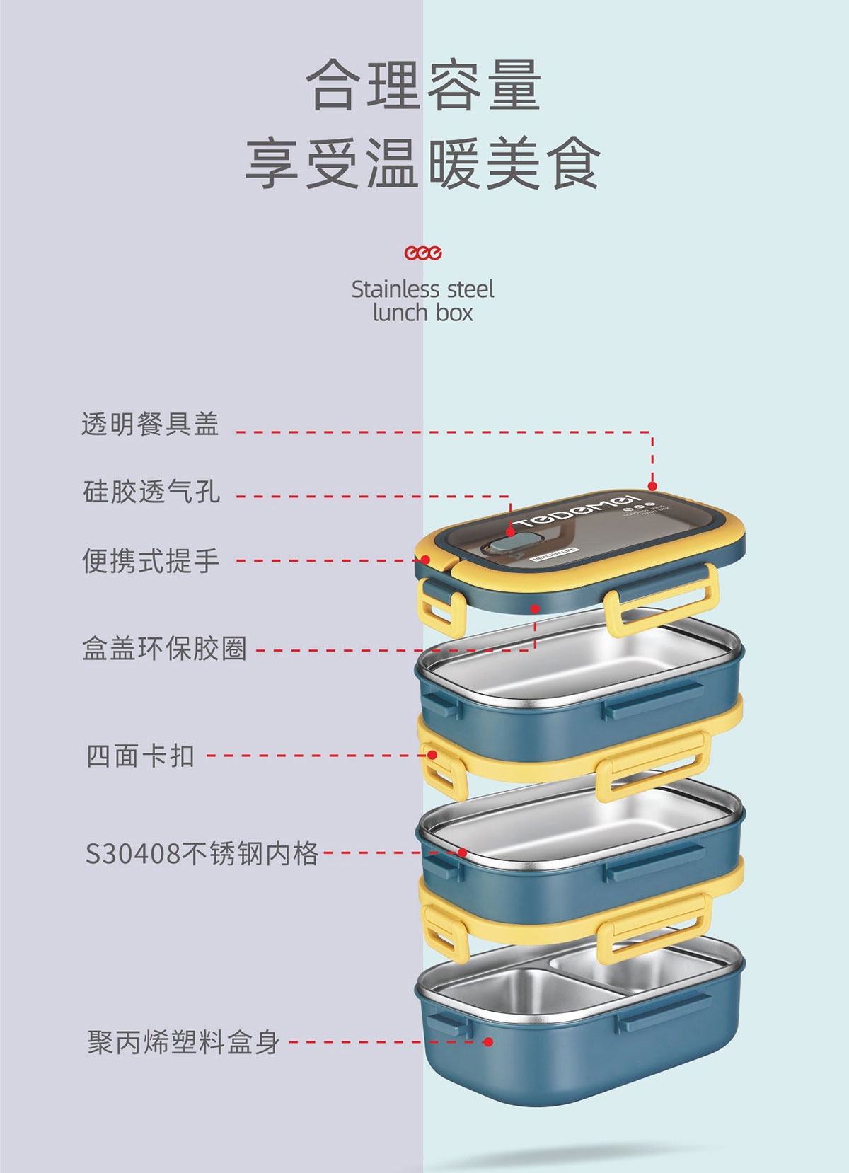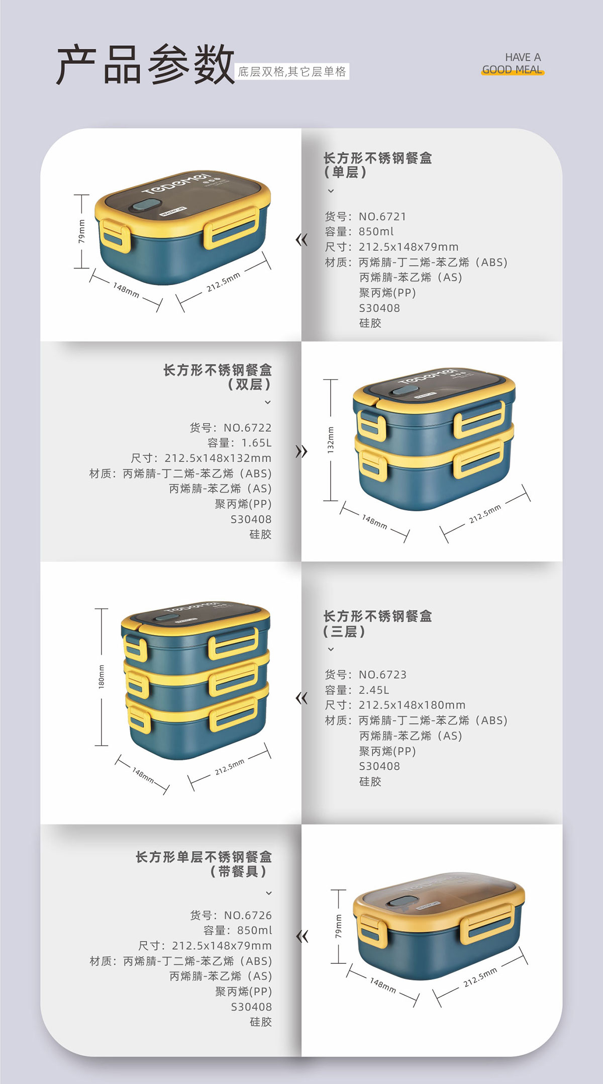 長(zhǎng)方形不銹鋼餐盒(單層/雙層/三層)