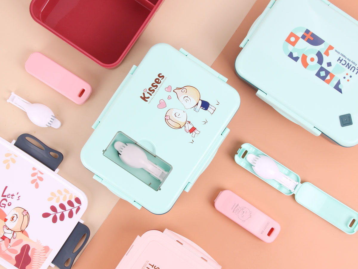印花飯盒(長(zhǎng)方形/含餐具)