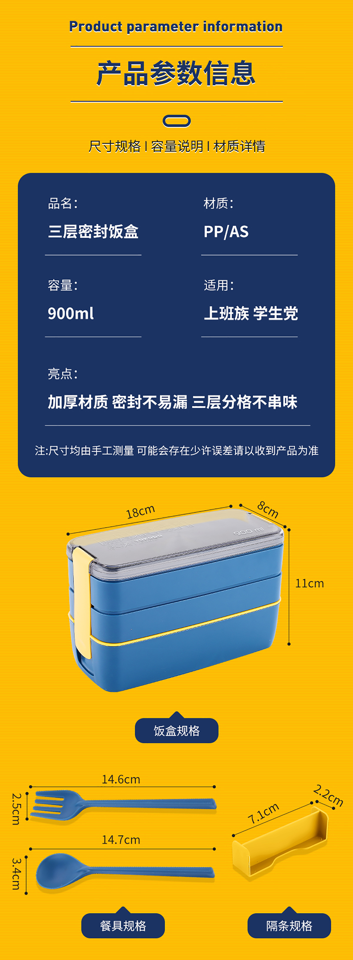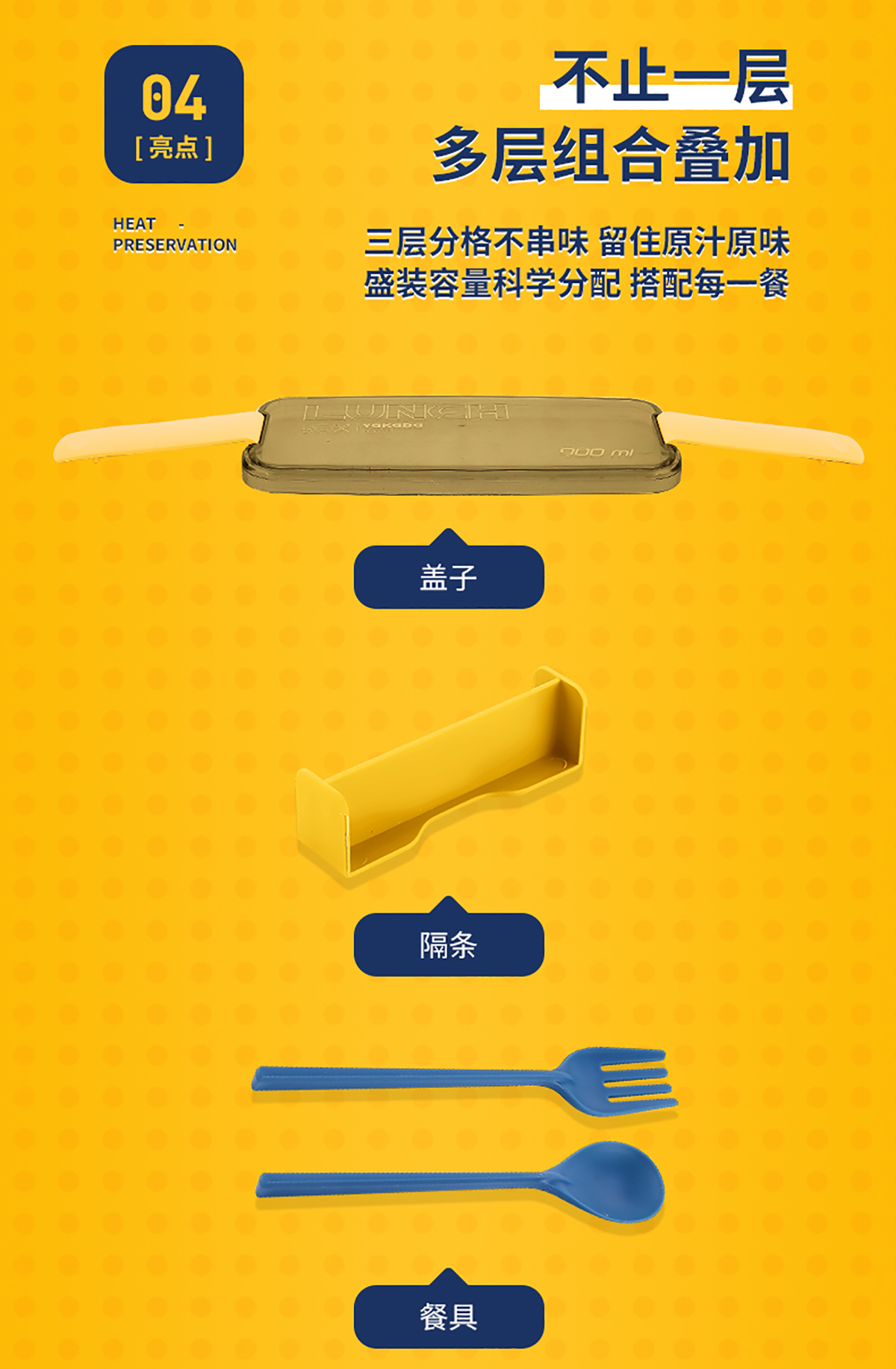 莫蘭迪三層飯盒900ml