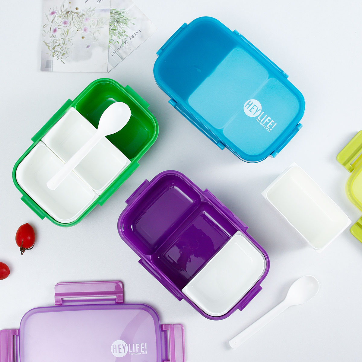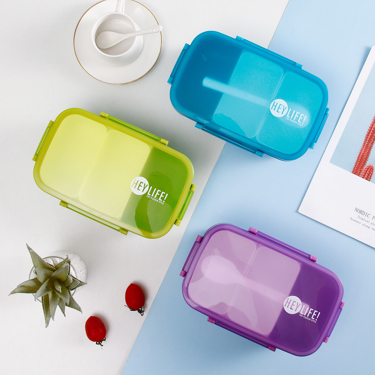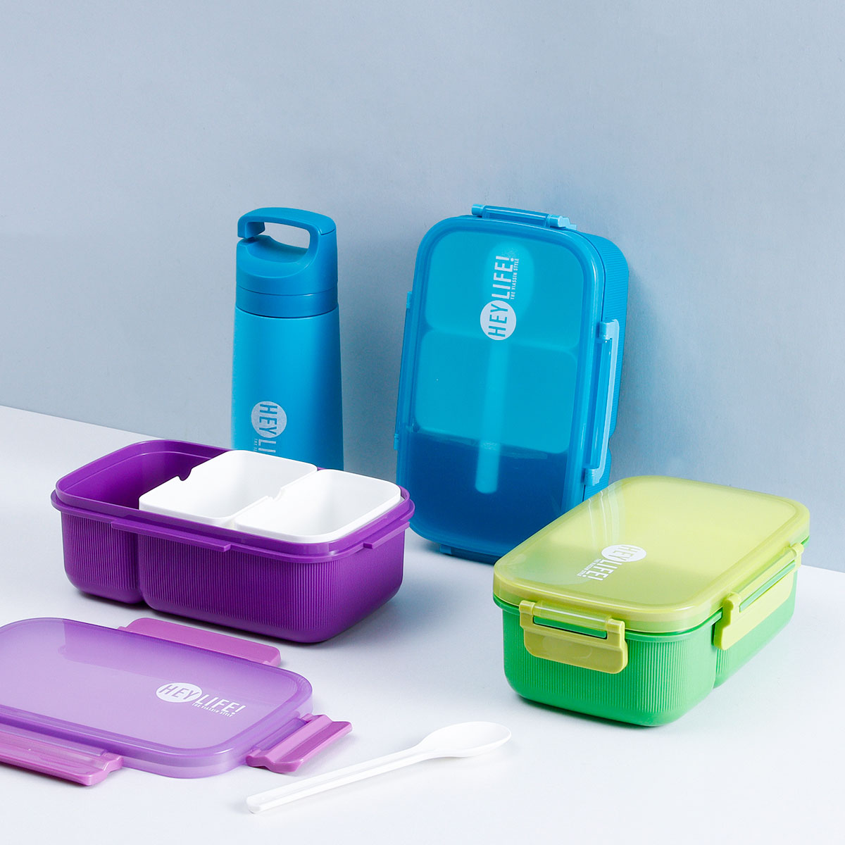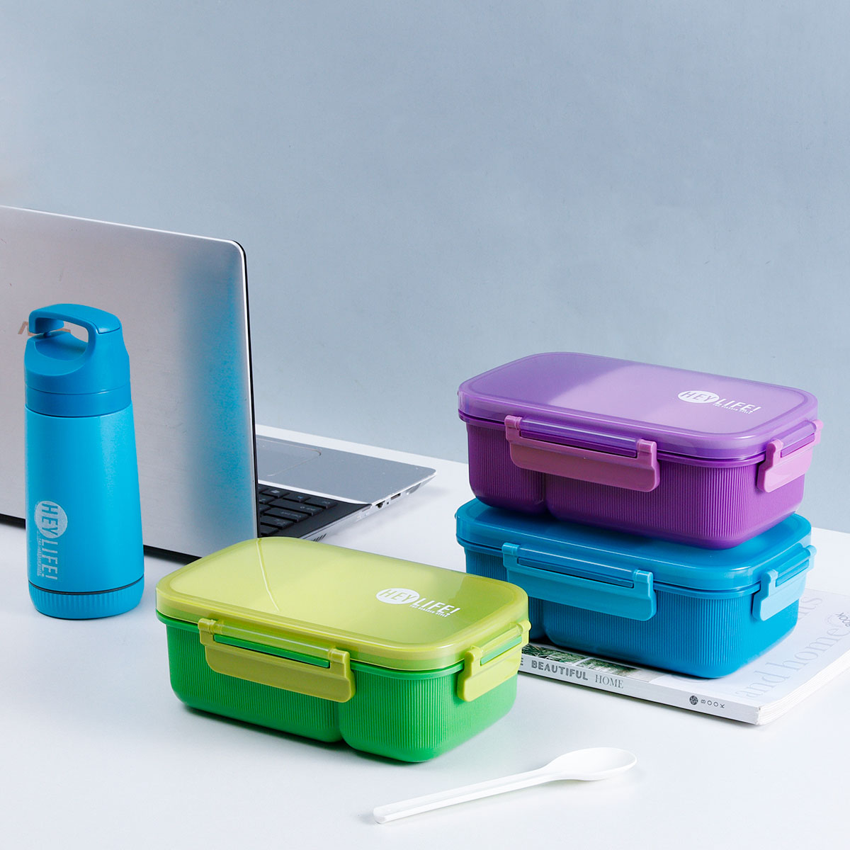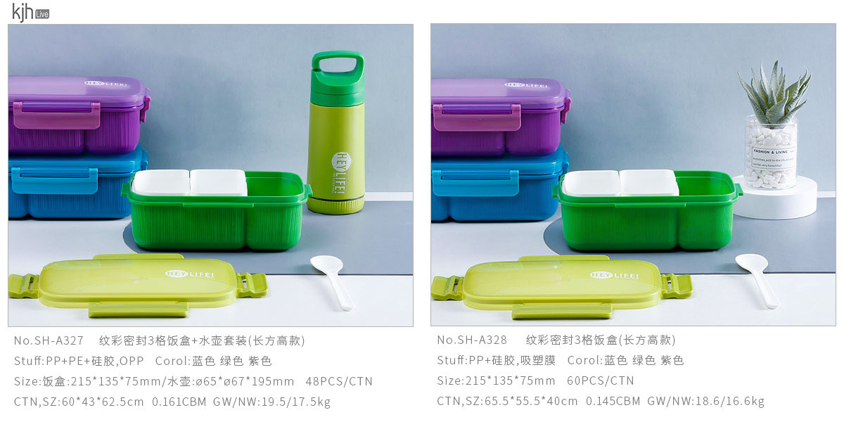 紋彩密封3格飯盒+水壺套裝(長(zhǎng)方高款)