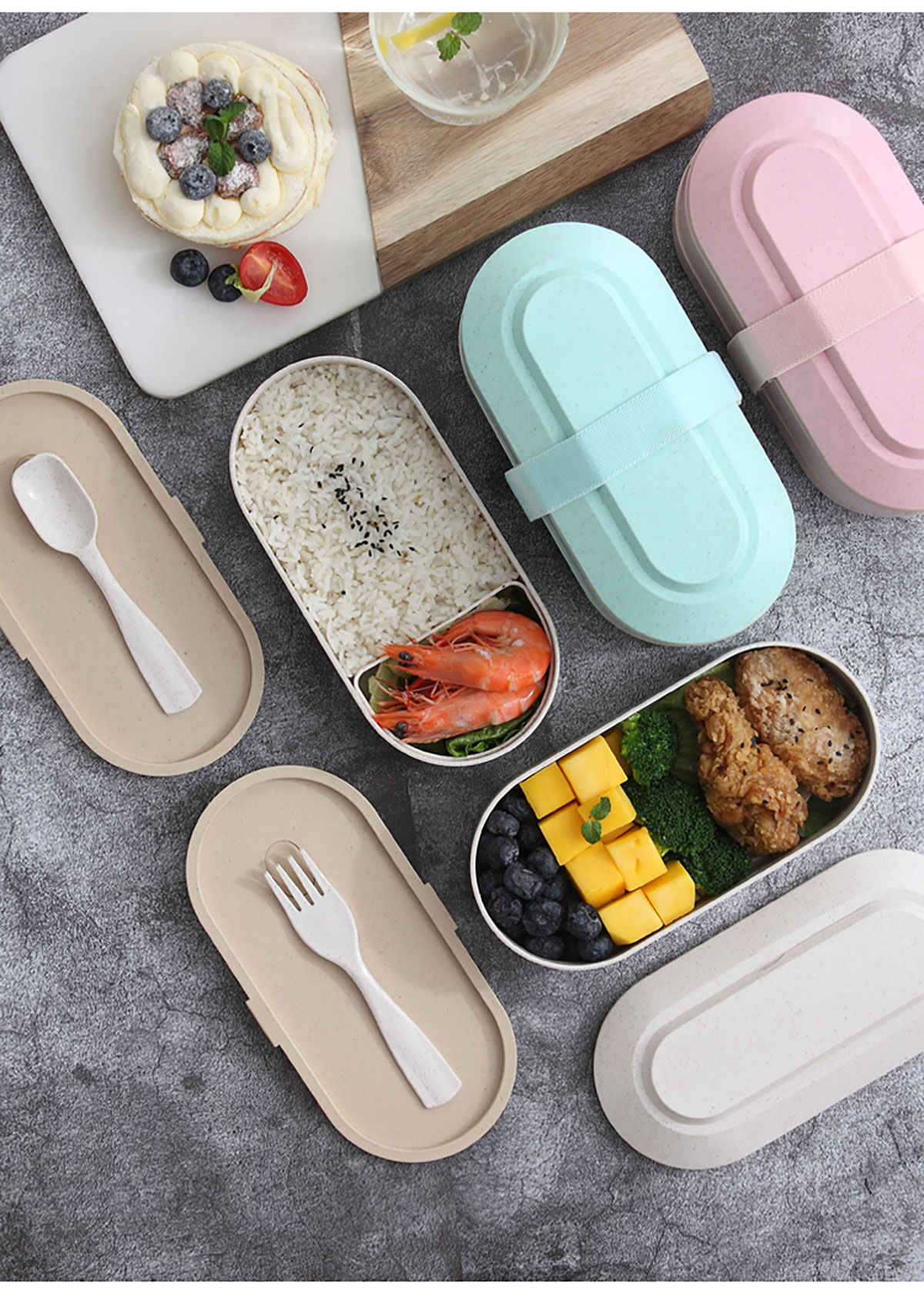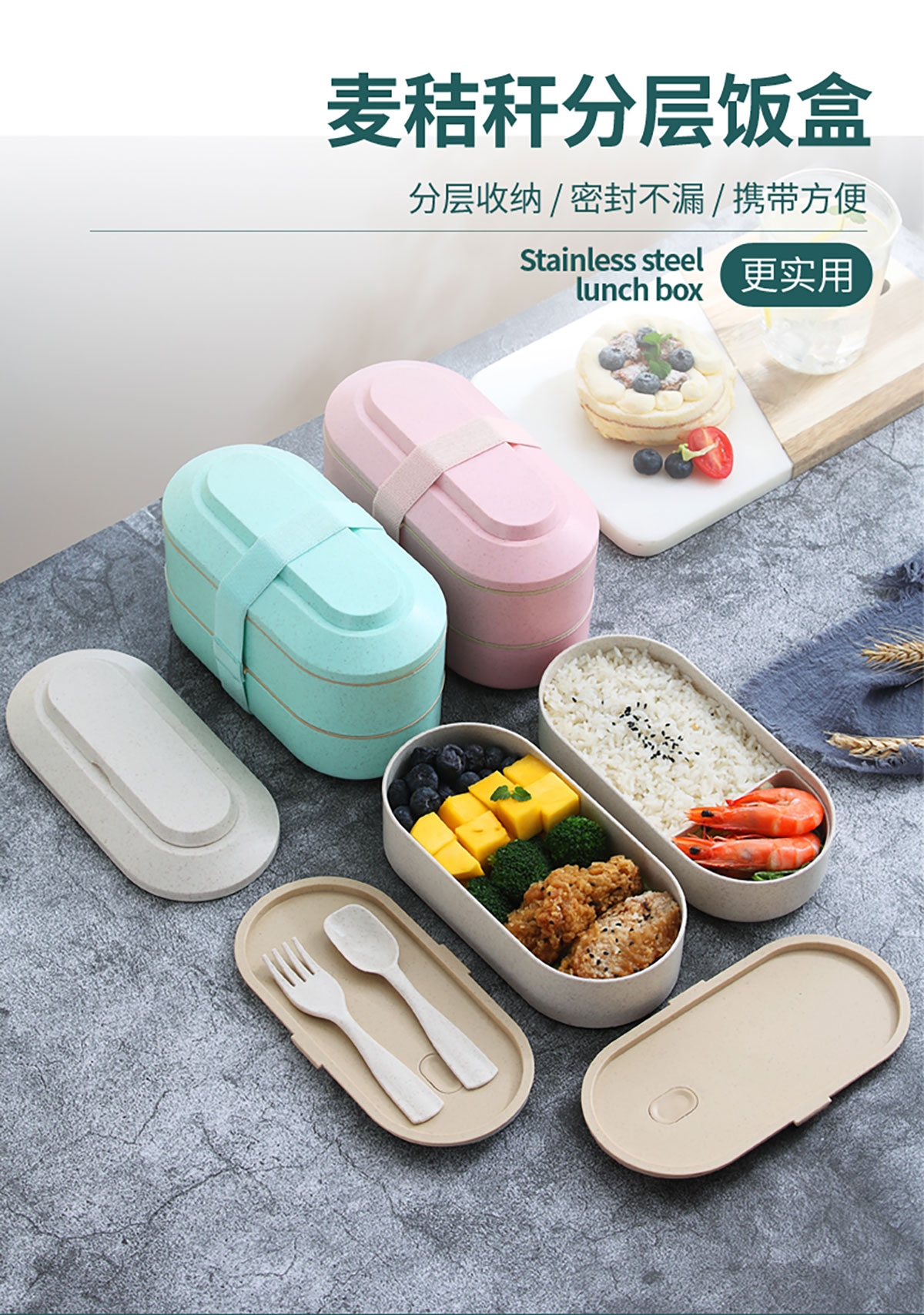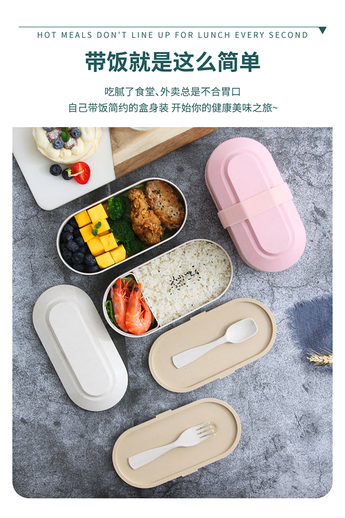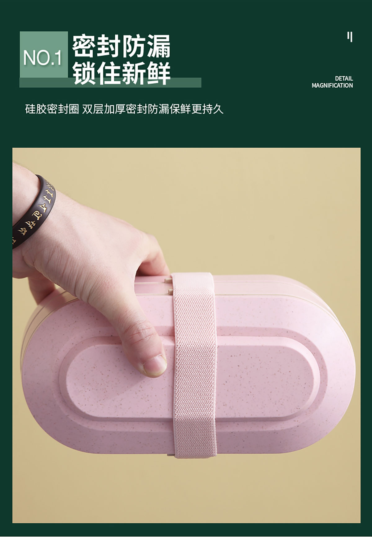 麥桔橢圓綁帶雙層飯盒900ml