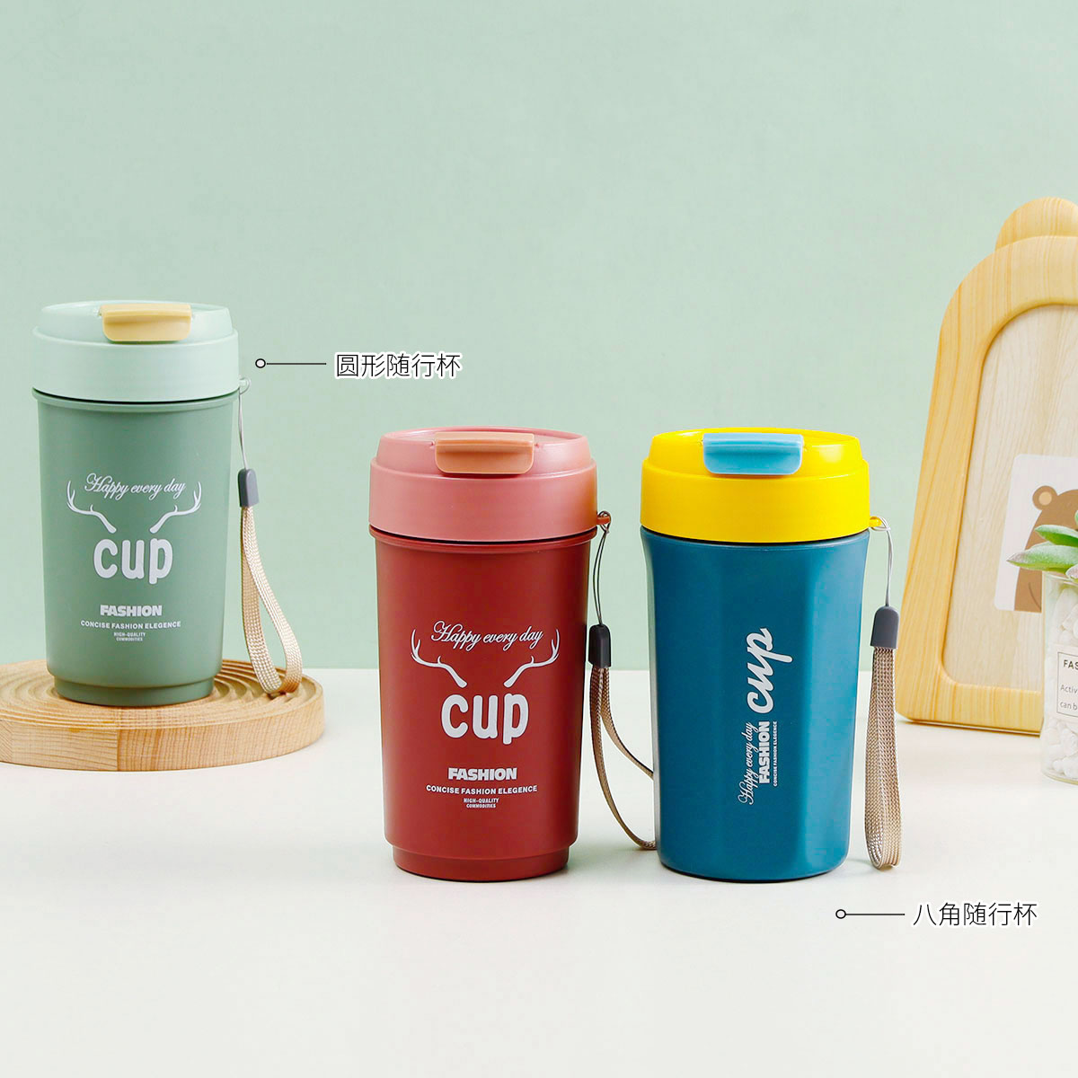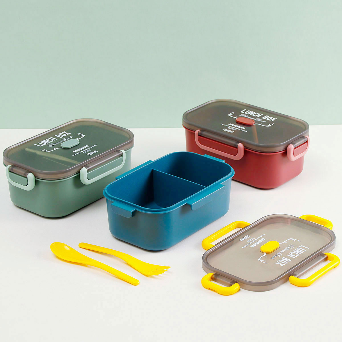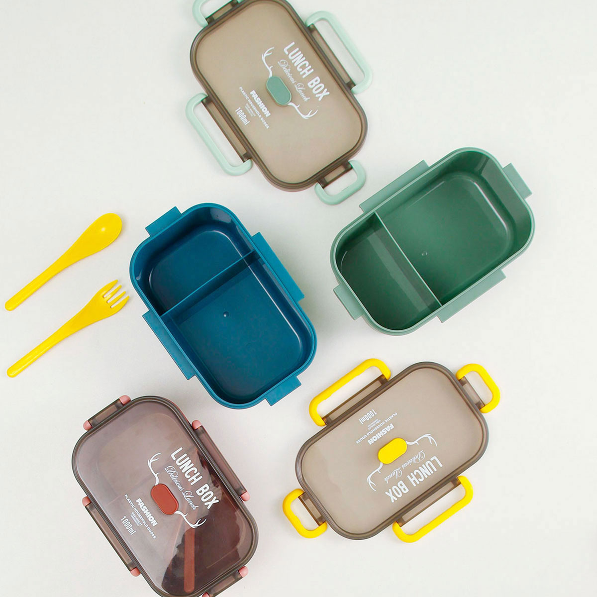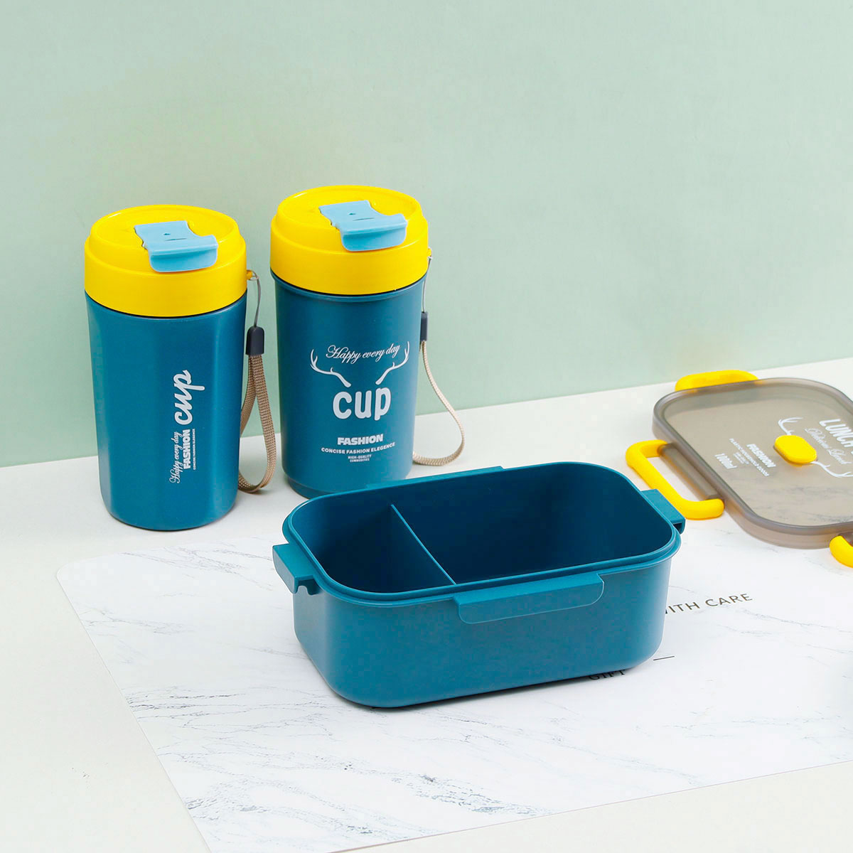 長方單層分格密封飯盒(1000ml)+圓形/八角隨行杯(500ml)