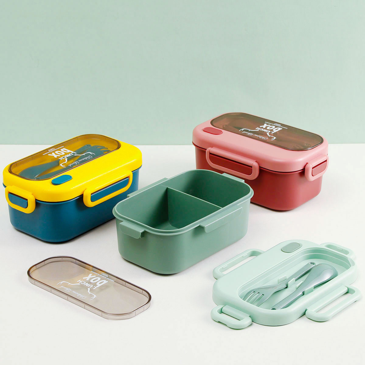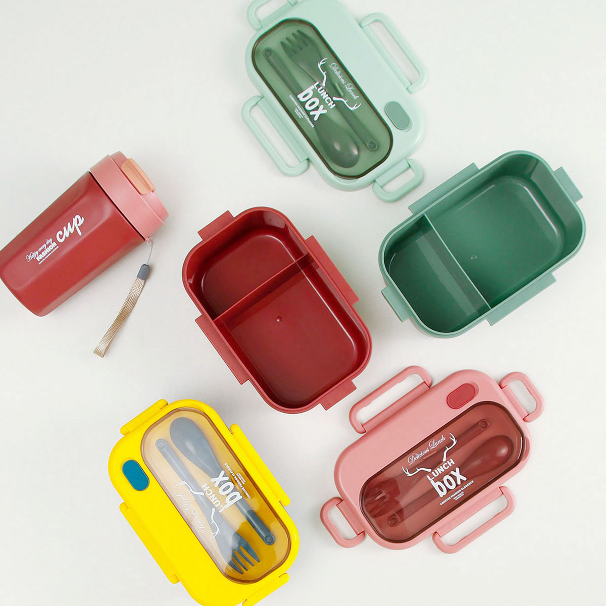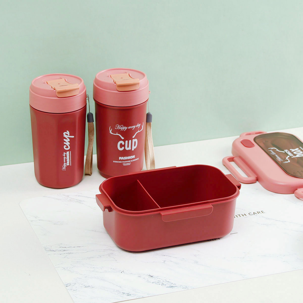 品悅長(zhǎng)方單層分格密封飯盒(1000ml)+圓形/八角隨行杯(500ml)