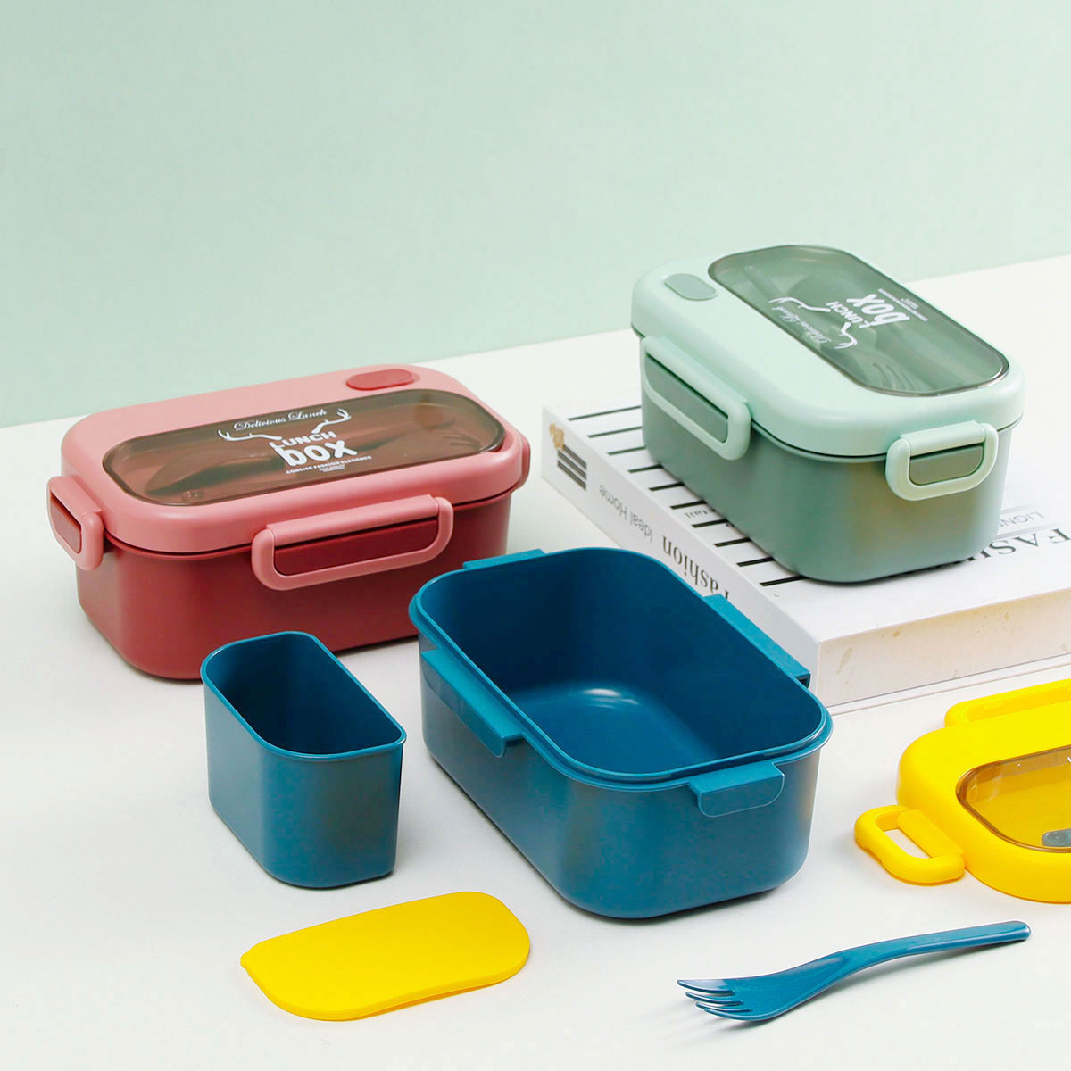 品悅長方單層密封飯盒(1000ml)(含格子)+圓形/八角隨行杯(500ml)