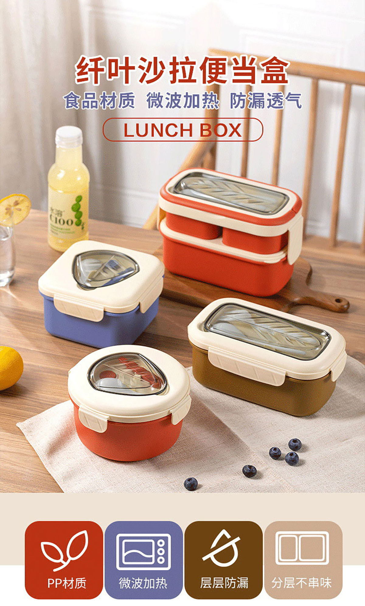 纖葉沙拉便當(dāng)盒(圓形/正方形/長方形/雙層長方形)
