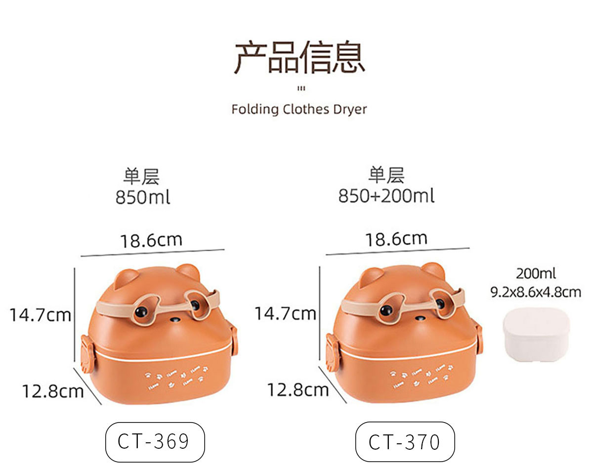 CT-372(雙層帶內(nèi)格):186*128*205mm/900*850ml 內(nèi)格:92*86*48mm/200ml