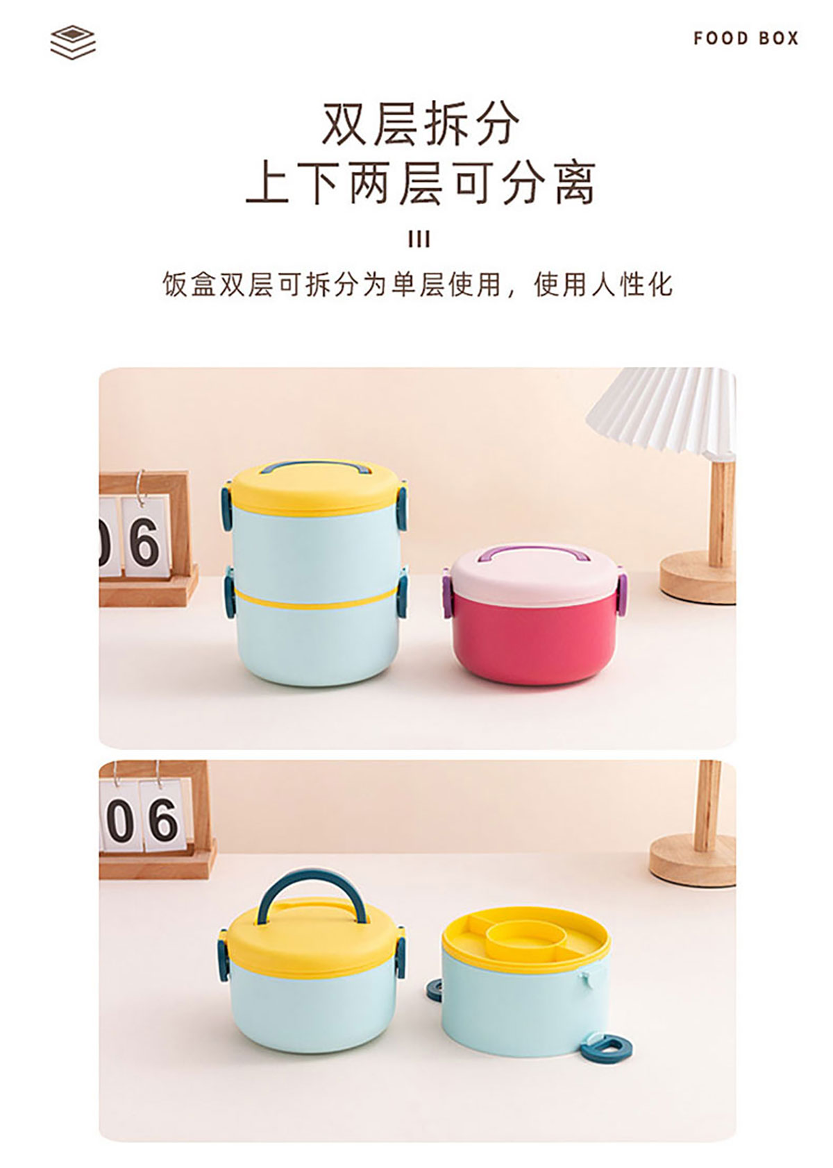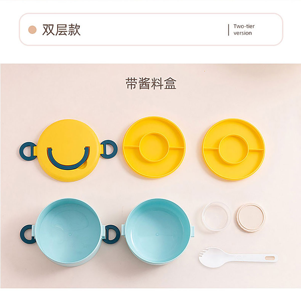 圓形笑臉飯盒單層/雙層(帶沙拉盒/塑料款)