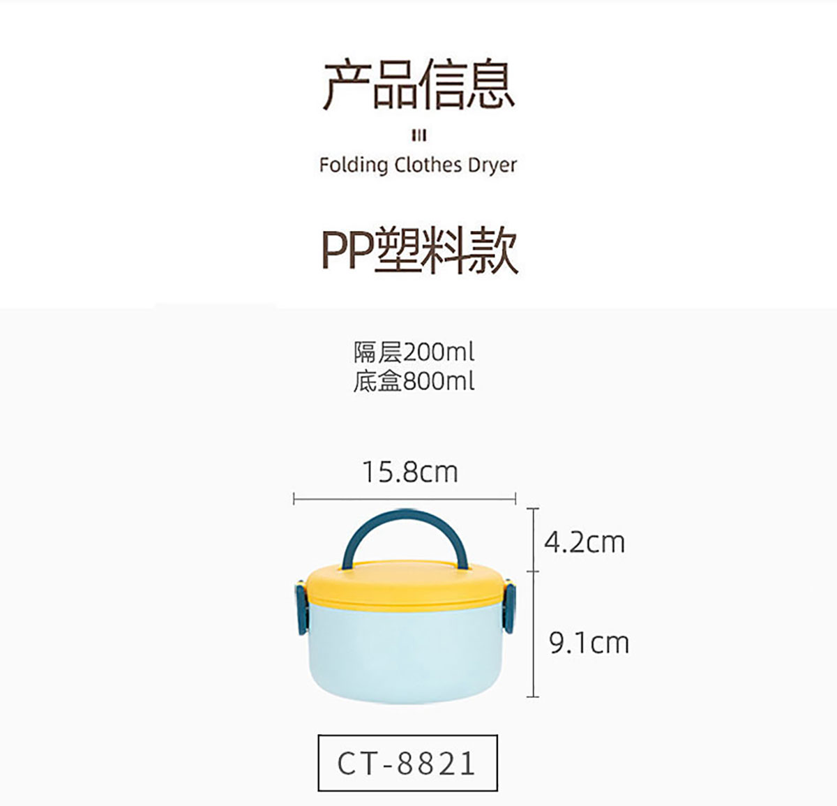 Size: CT-8821(單層):158*91mm/800ml