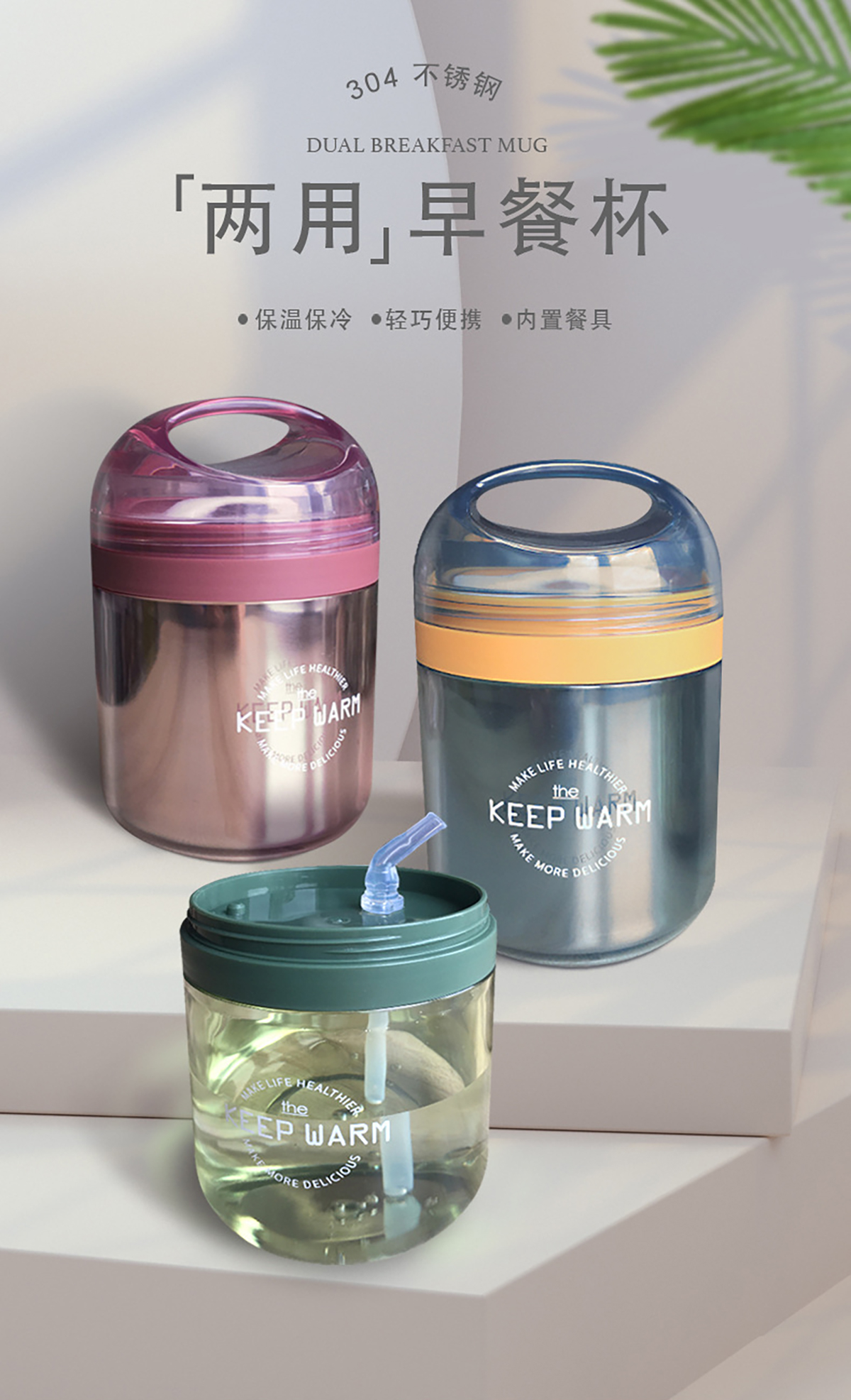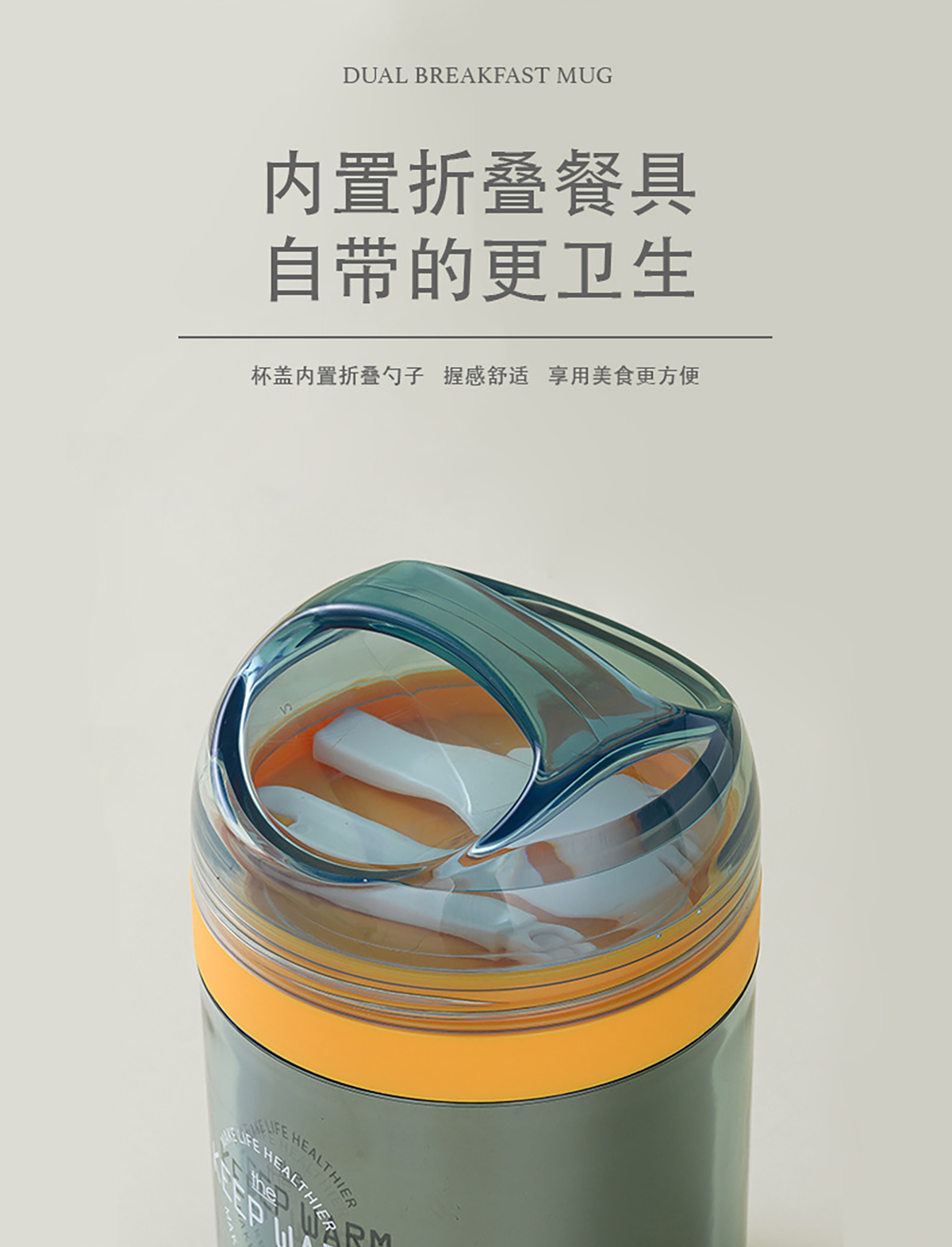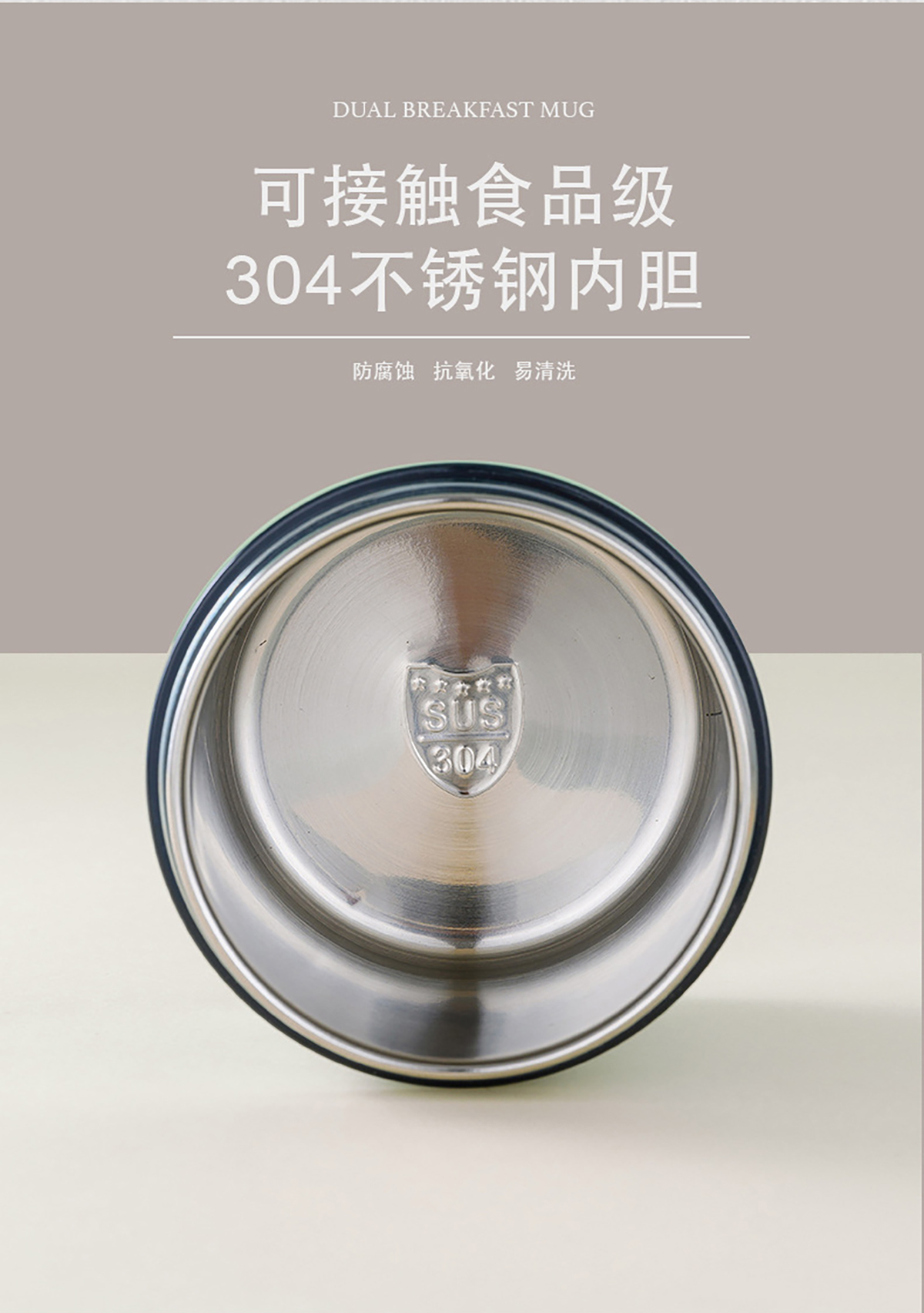 兩用不銹鋼早餐杯304不銹鋼內(nèi)膽450ml叉勺