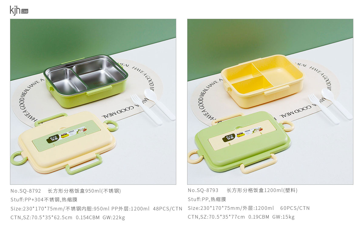 Size: SQ-8792(不銹鋼):230*170*75mm/不銹鋼內膽:950ml PP外層:1200ml SQ-8793(塑料):230*170*75mm/外層:1200ml