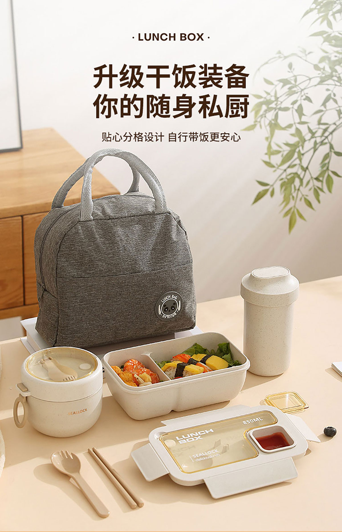 簡麥便當盒飯盒/套裝(飯盒+水杯/飯盒+水杯+灰色餐袋/飯盒+燕麥杯+灰色餐袋)