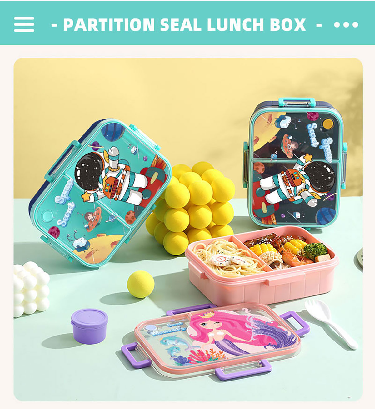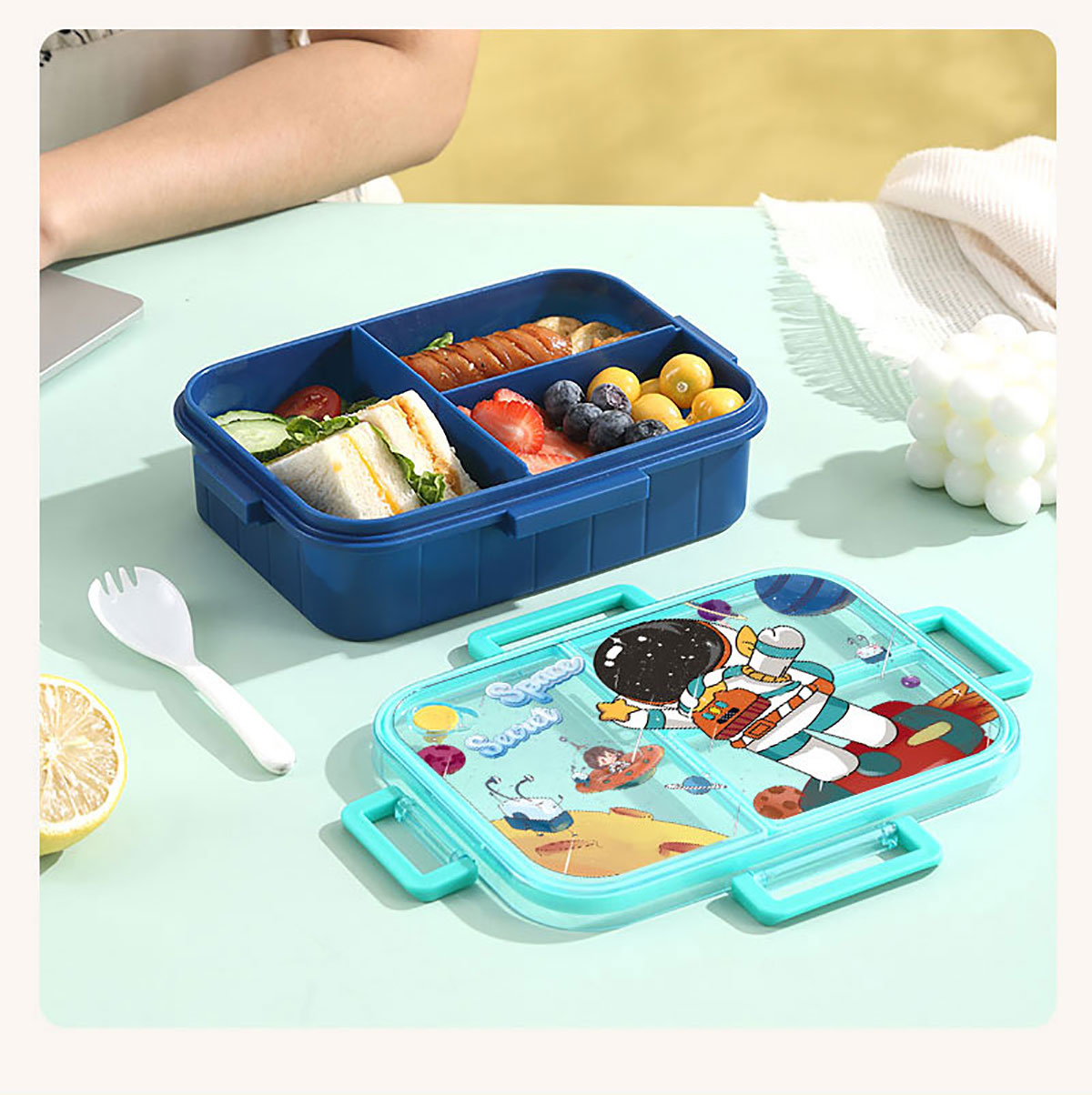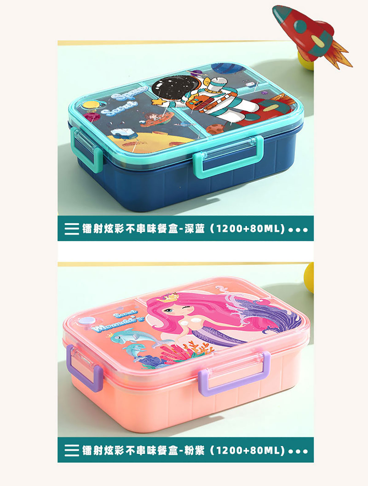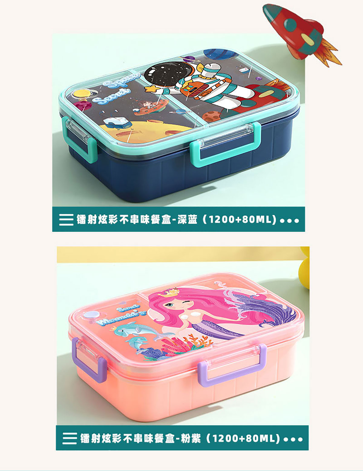 彩光卡通不串味餐盒(塑料2格1200ml/3格1200ml+醬料杯80ml)