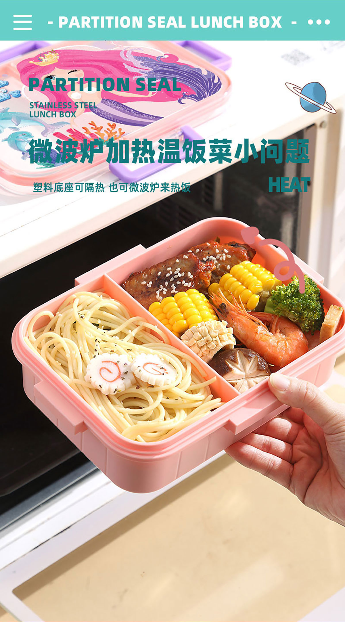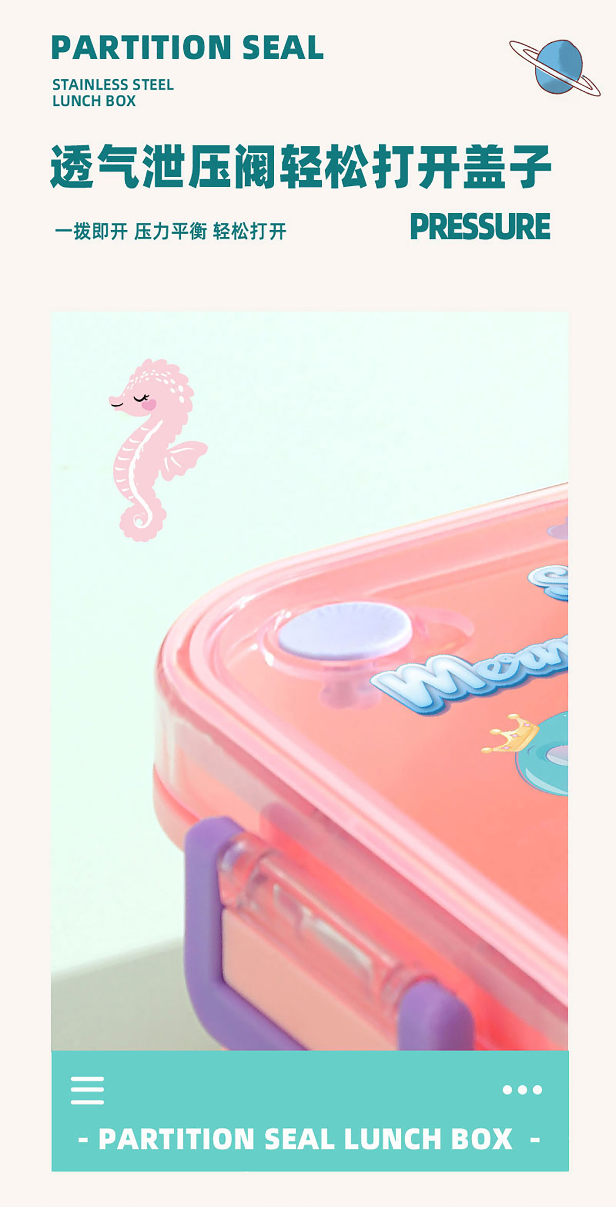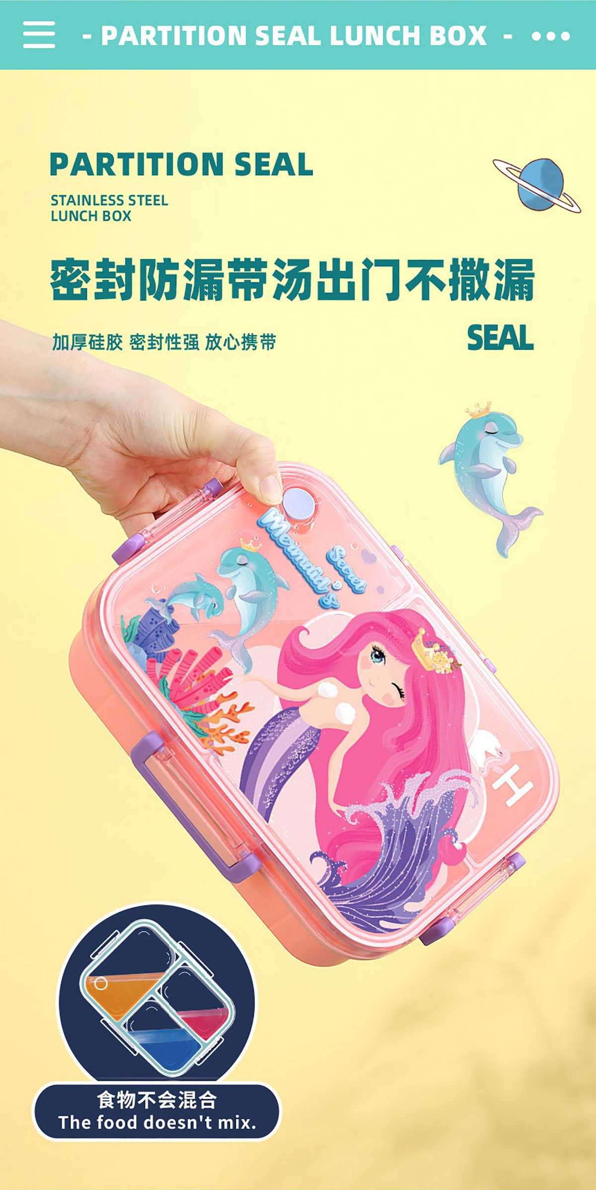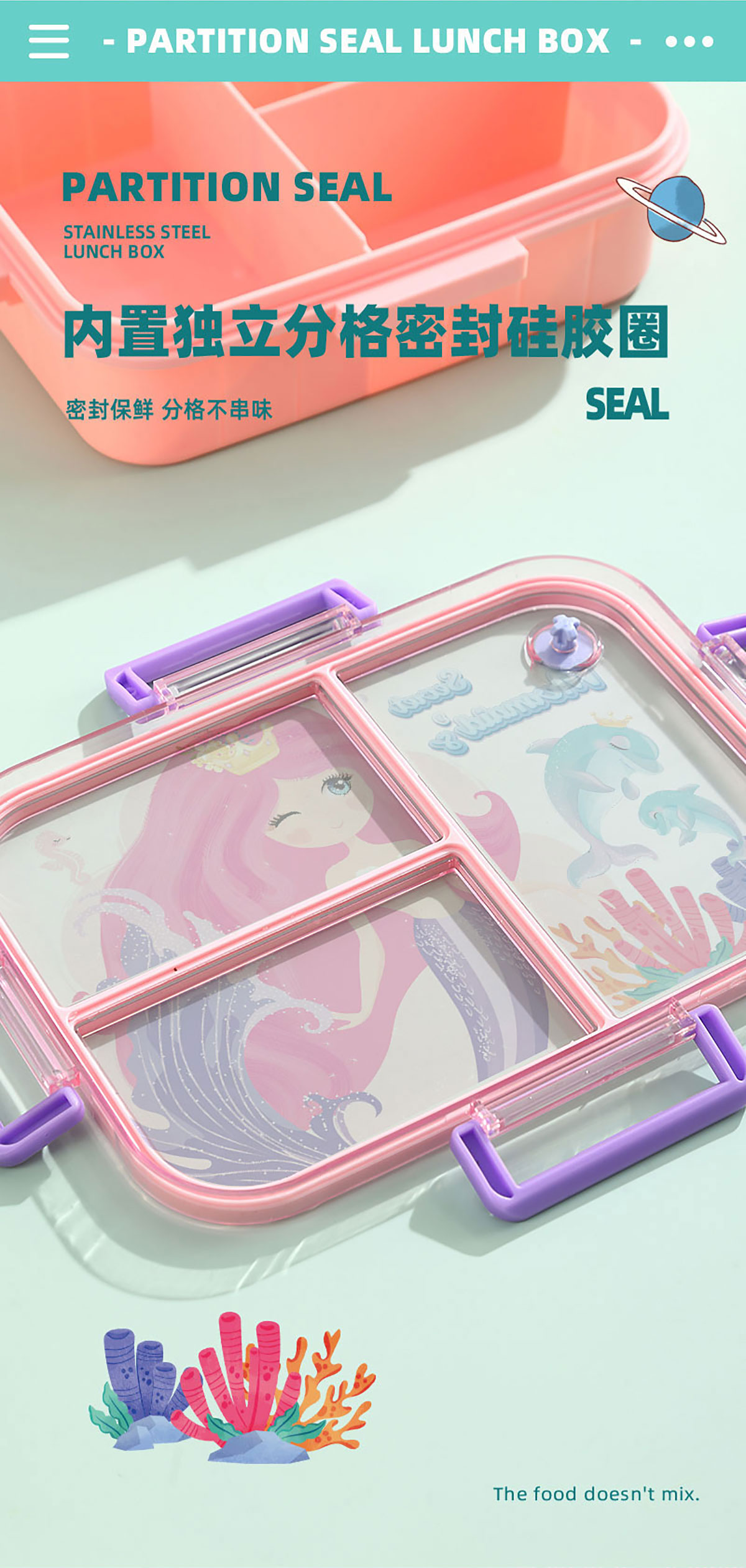 彩光卡通不串味餐盒(塑料2格1200ml/3格1200ml+醬料杯80ml)