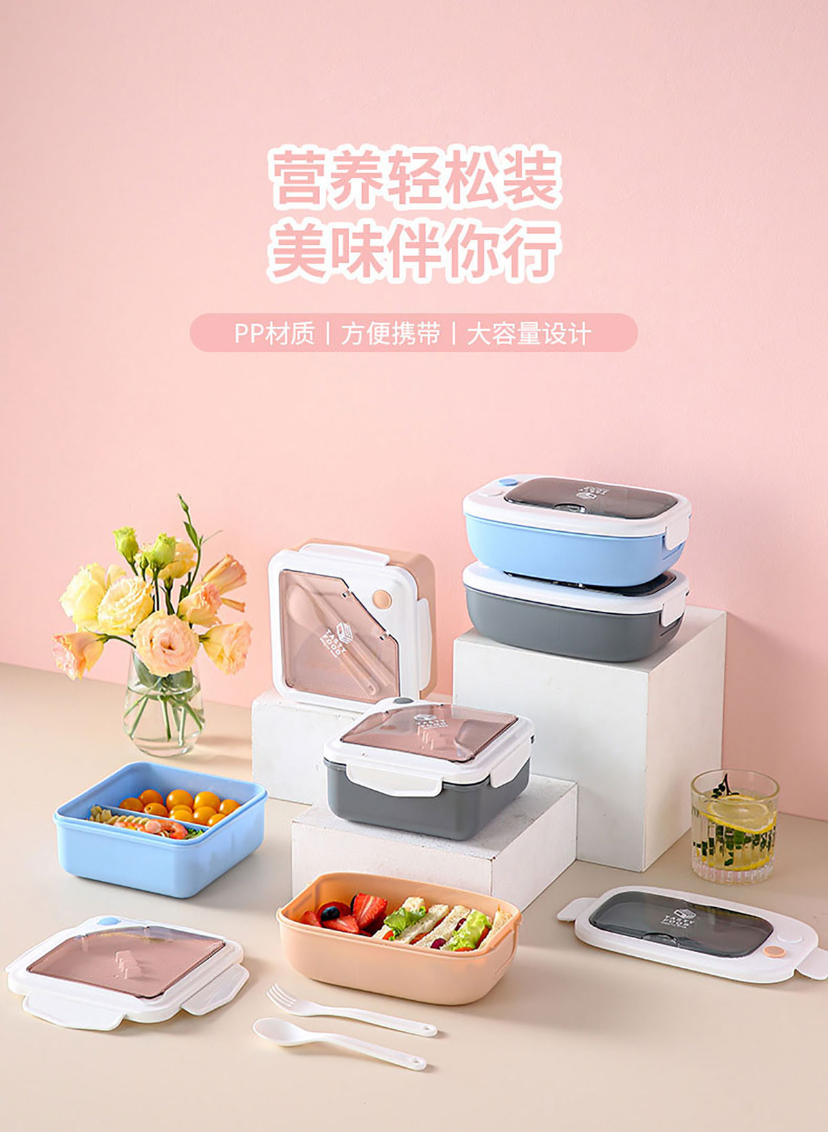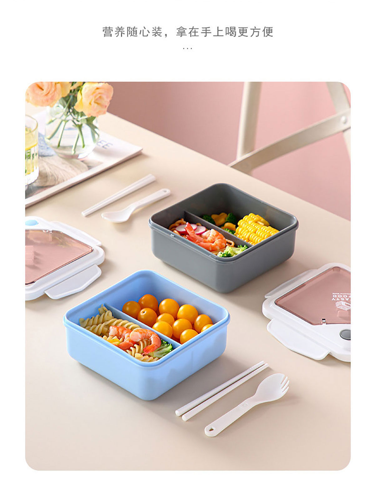 長方形/正方形飯盒(配筷+勺)1100ml