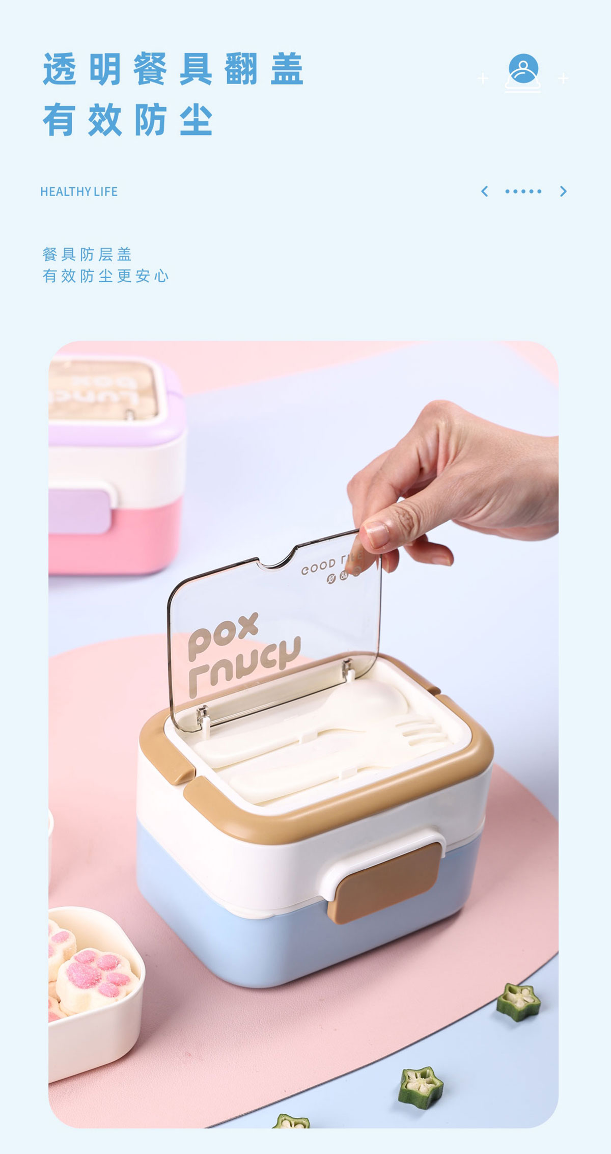 長方形疊趣雙格不銹鋼款/PP款餐盒