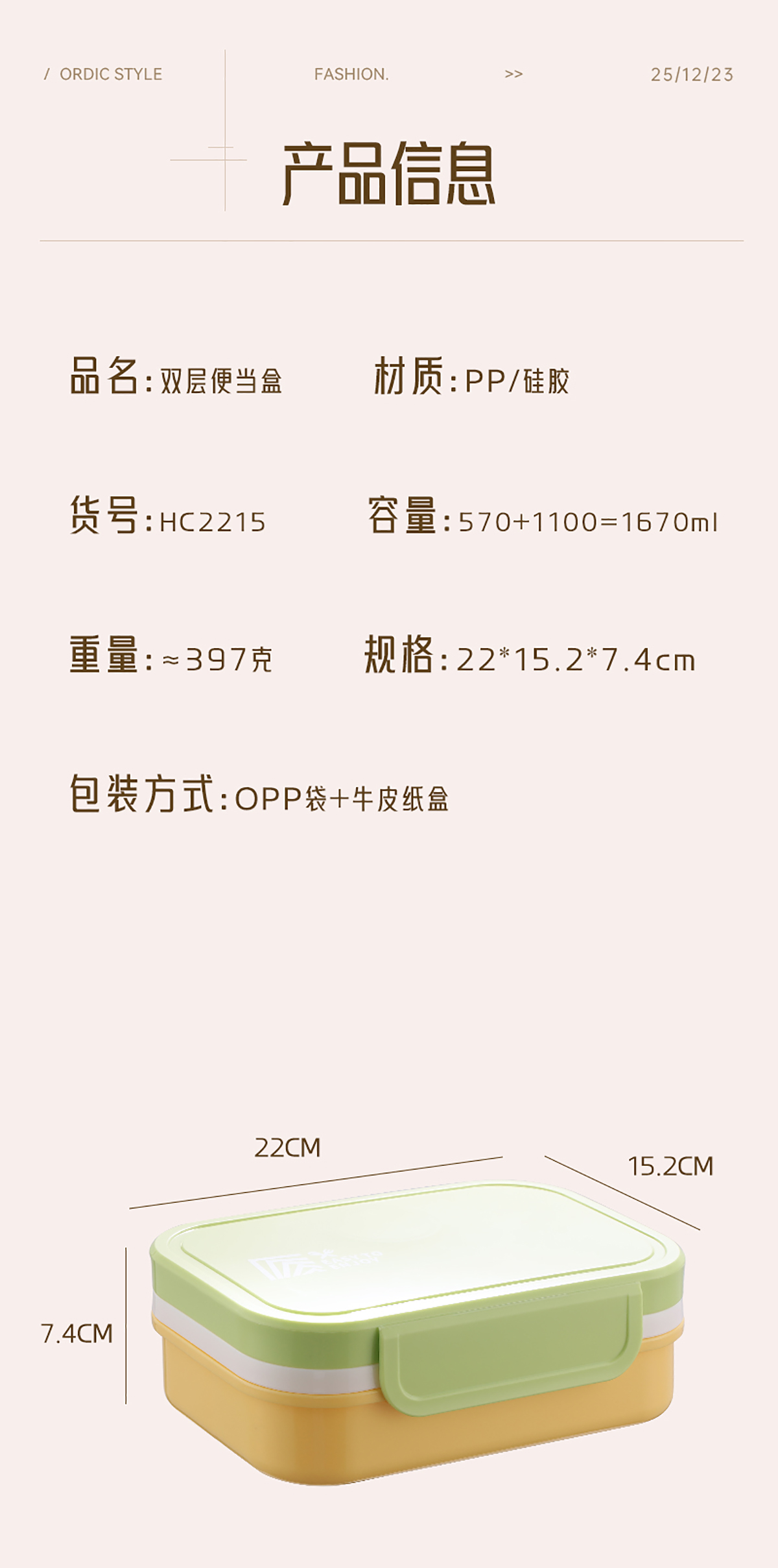 雙層便當(dāng)盒1100+570=1670ml