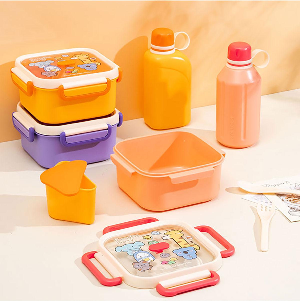 尚趣正方單層飯盒(1000ml)(含格子)/+圓形/方形運(yùn)動(dòng)水壺(500ml)