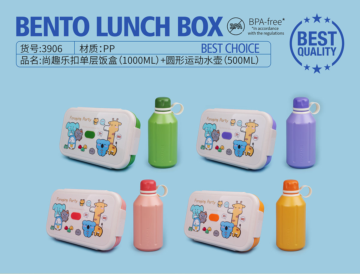 尚趣樂扣單層飯盒(1000ml)+圓形運(yùn)動水壺(500ml)