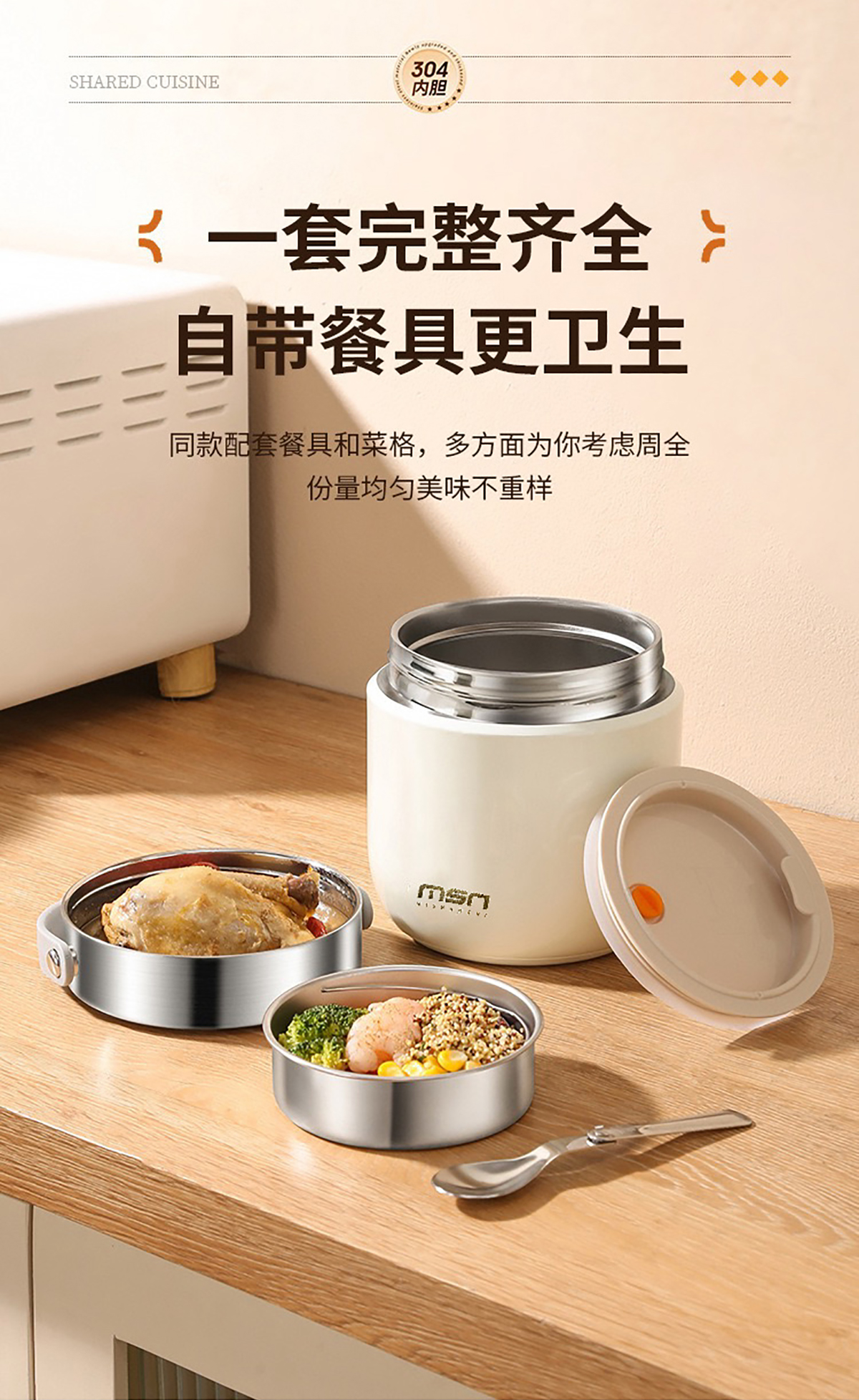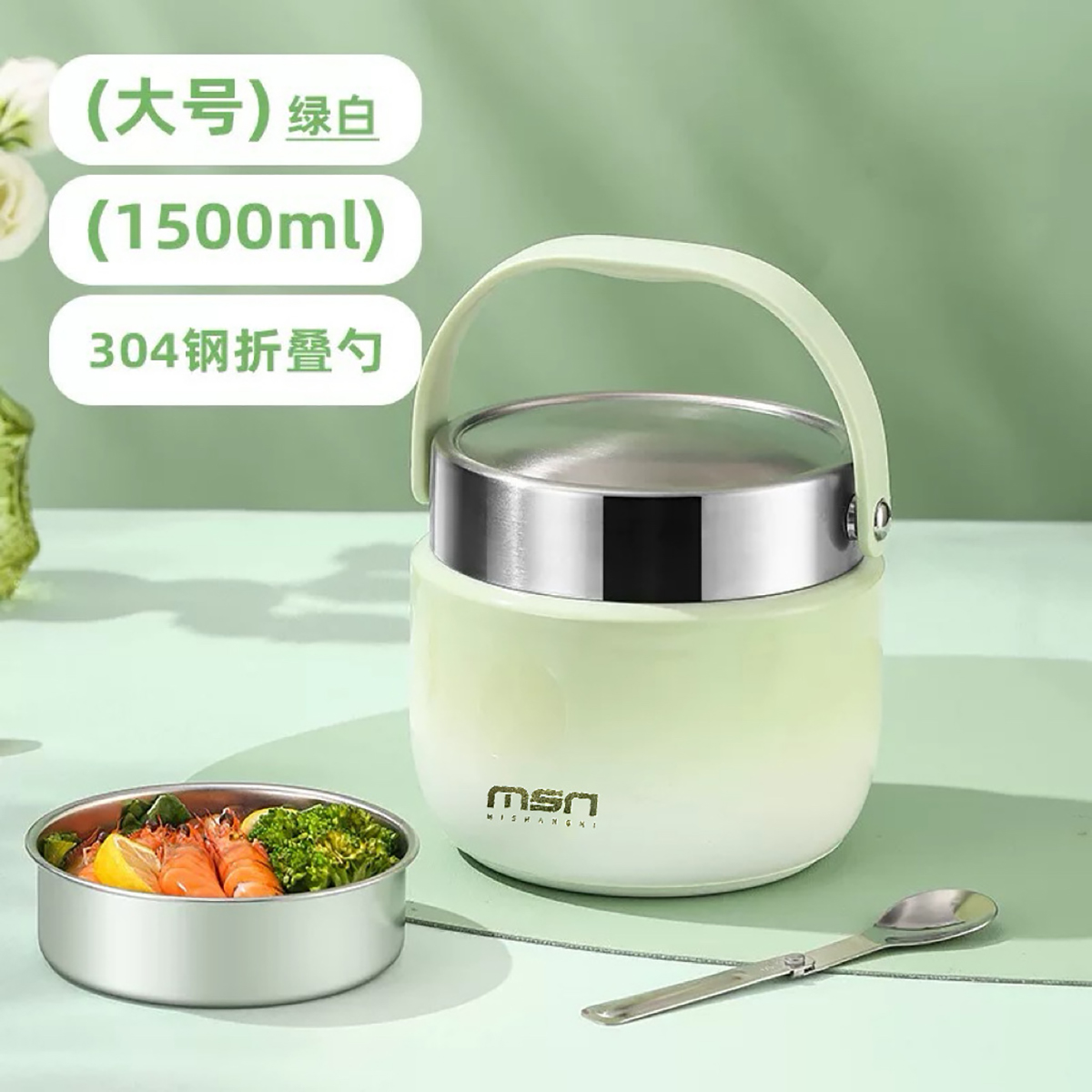 1.2L/1.5L304真空防溢雙層飯盒 本色/漸變