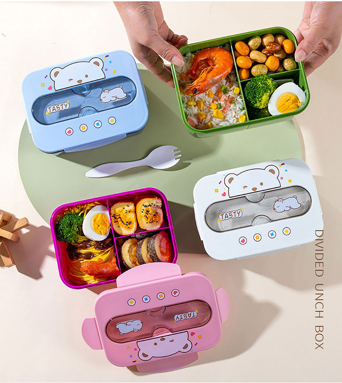 小熊三格飯盒1200ml